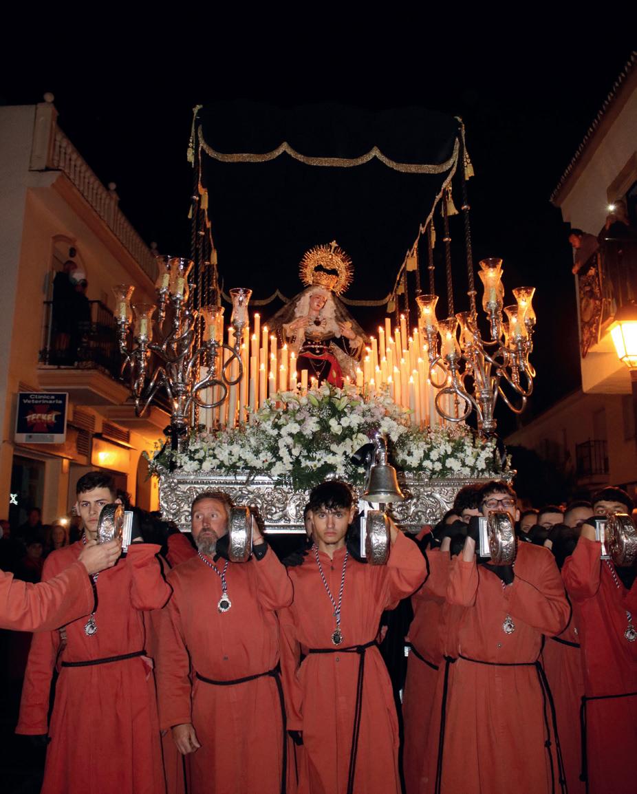 acompañan las imágenes sumidos en el más absoluto respeto y admiración. En este punto quisiera destacar muy especialmente la importantísima labor social que desempeñan y que es su razón de ser: la ayuda al prójimo. De ahí que, cuando salen en procesión por nuestras calles, el respaldo y la veneración del pueblo se hace palpable de una manera incomparable y que nos es fácil describir con palabras: en perfecta sintonía entre fe y expresión popular. Mi sincero agradecimiento a todas las personas implicadas en la elaboración de este programa pues, a través de su entrega y cariño, podemos conocer con detalle no solo los horarios e itinerarios, sino también las novedades y detalles históricos de cada hermandad, cofradía y grupo parroquial. Deseo de todo corazón que disfrutéis de nuestra Semana Santa y que os encandile una de las celebraciones más hermosas y con más alma de Mijas.