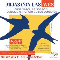 Mijas with Birds: talk and workshop on the care and handling of swifts, led by veterinarian Silvia Montero La Cala Branch Office, 19:30 h