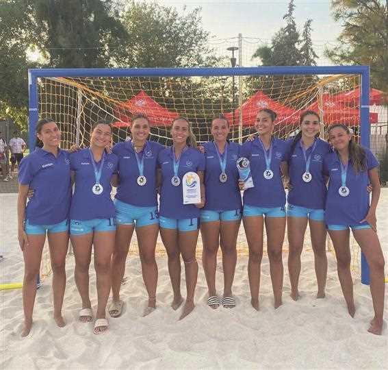 Las jugadoras, mostrando los trofeos tras Campeonato de Europa Universitario Eusa Beach Sports 2025 / A.D.