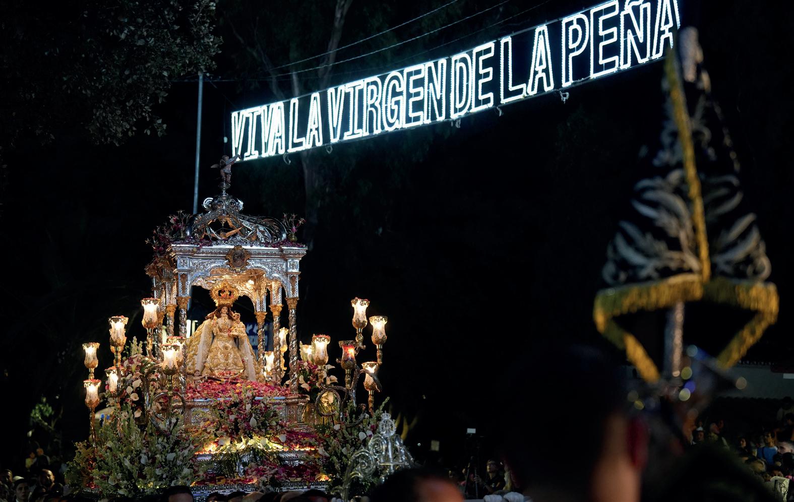 21:30 h. SOLEMN PROCESSION of the SACRED IMAGE OF THE HOLY VIRGEN DE LA PEÑA along the usual route.