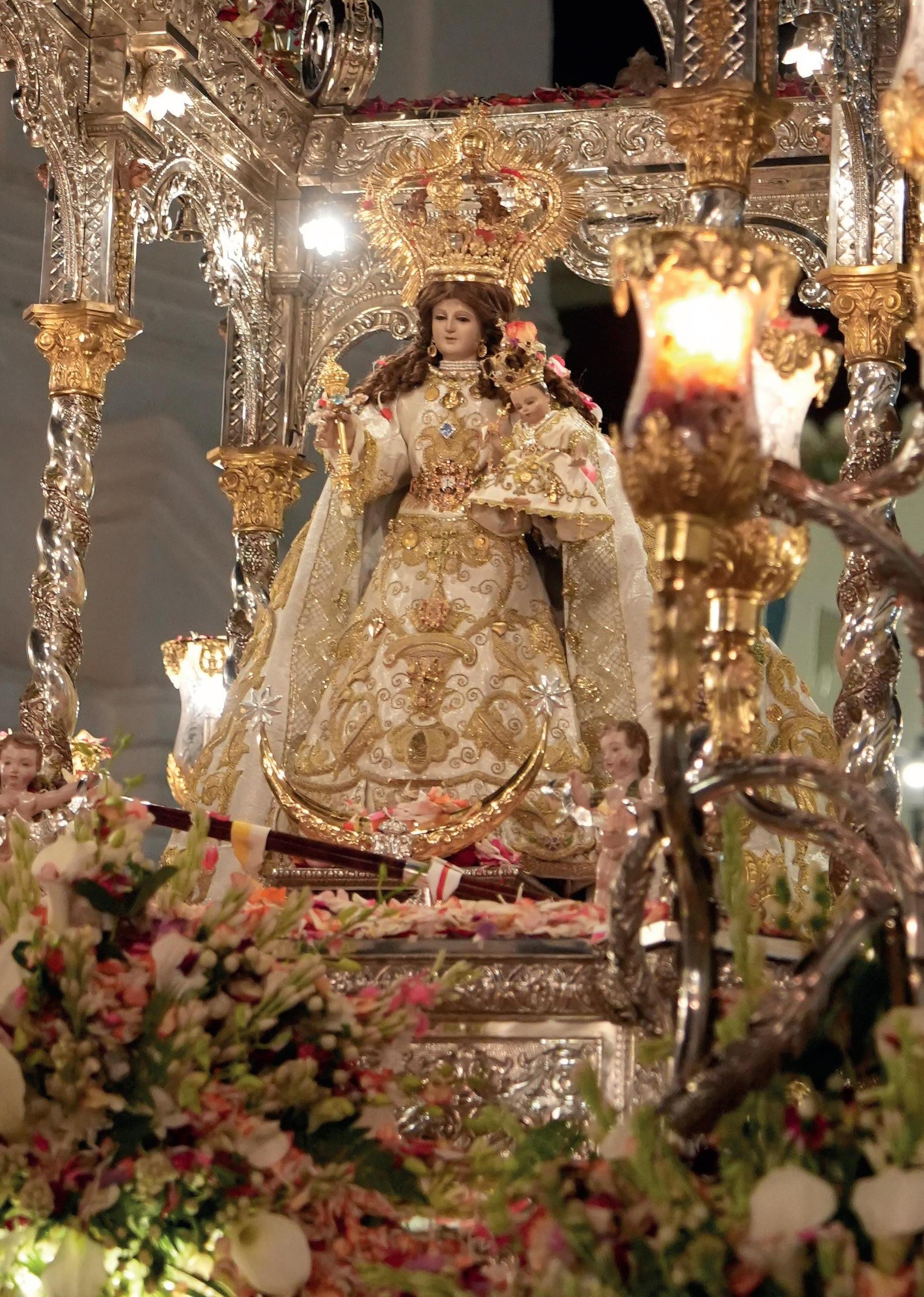 21:30 h. SOLEMN PROCESSION of the SACRED IMAGE OF THE HOLY VIRGEN DE LA PEÑA along the usual route.