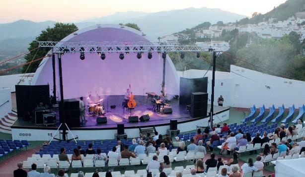 M.J.G./ C.B. La Banda de Música de Mijas se subió al escenario en dos ocasiones. En la primera, que fue al comenzar el acto, tocó marchas muy movidas, y en la segunda, en la que Juanfra Aguilera se atrevió a tocar la trompeta, interpretó el Himno a la Virgen de la Peña compuesto por el exdirector de la banda, Francisco Aguilar. También hizo partícipe a los asistentes y un grupo se subió también al escenario a bailar con el pregonero canciones clásicas de las fiestas.