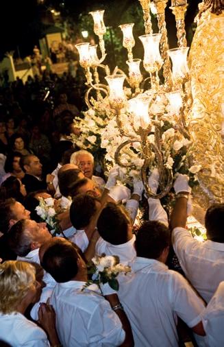 El día 8 será la festividad de la Virgen de la Peña con su tradicional procesión a partir de las 21:30 horas desde la iglesia de la Inmaculada, a la que previamente se habrá trasladado la imagen desde su ermita, un acto que será el día 29. La procesión discurrirá por La Muralla, la Cuesta de la Villa, plaza de la Constitución, avenida del Compás, calle Los Caños, plaza de la Libertad, calle Carril, calle Coín y Barrio Santana, para volver por calle Coín, Barrio Santana, plaza de la Constitución, enfilando la avenida del Compás de vuelta a su ermita. A su llegada a la avenida del Compás se le cantará una salve a la Virgen. Posteriormente, sobre la una de la madrugada, en la Caseta Municipal, habrá una actuación del grupo Los Barrieros del Sur, que ofrecerá un tributo al Barrio.