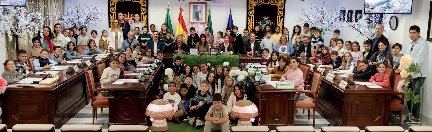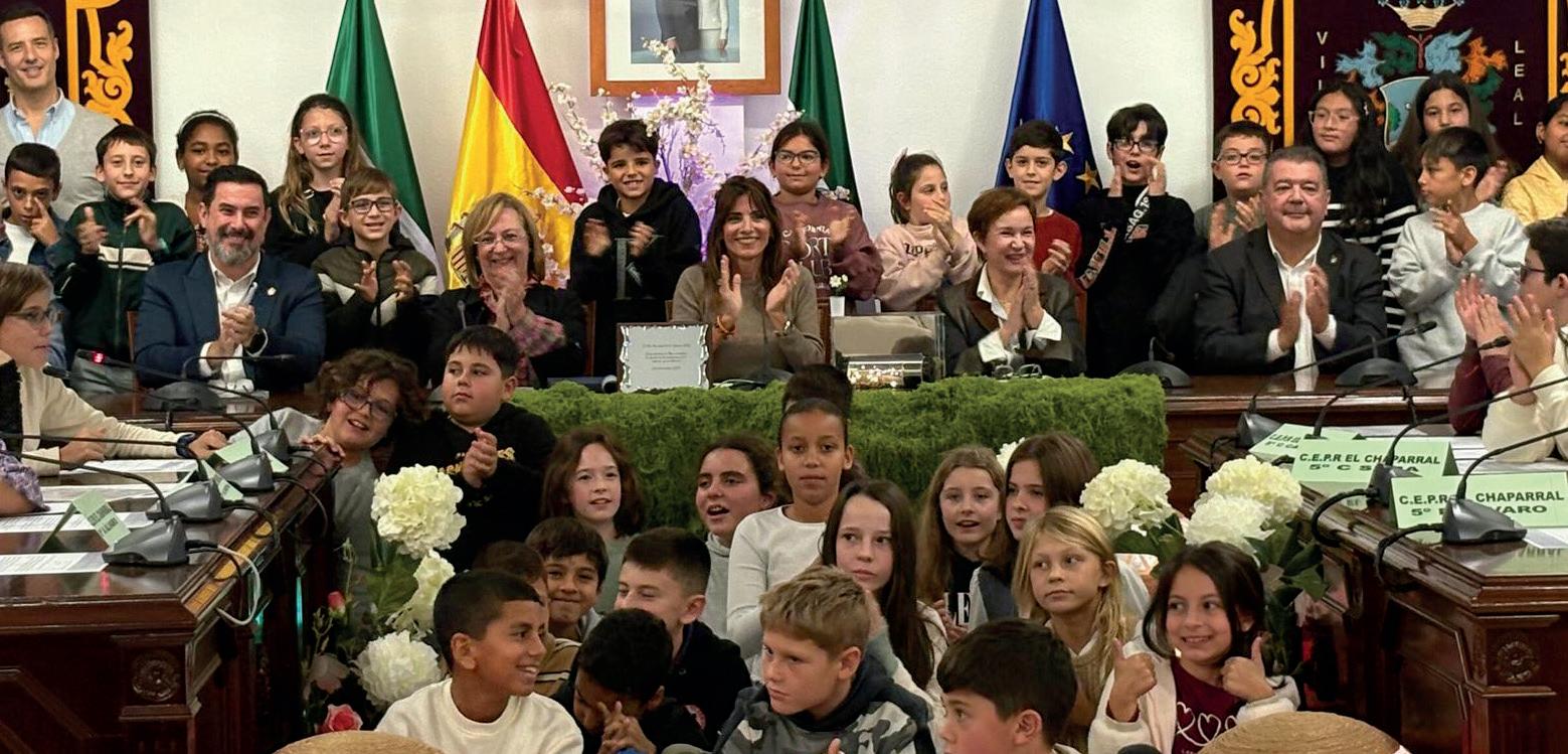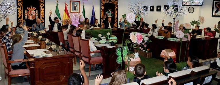 Con motivo del Día Mundial de la Infancia, que se conmemora cada 20 de noviembre, el Ayuntamiento de Mijas acogió el pasado jueves la celebración de un pleno municipal infantil presidido por la alcaldesa del municipio, Ana Mata. 80 alumnos de quinto de primaria de El Chaparral, San Sebastián y El Albero debatieron sobre temas relacionados con la naturaleza, presentaron sus propuestas para mantenerla y cuidarla, y las depositaron dentro de una cápsula del tiempo que se abrirá dentro de cinco años. Asimismo, también representaron a través de un mural los ‘Valores que nos unen’/ ACT. 13