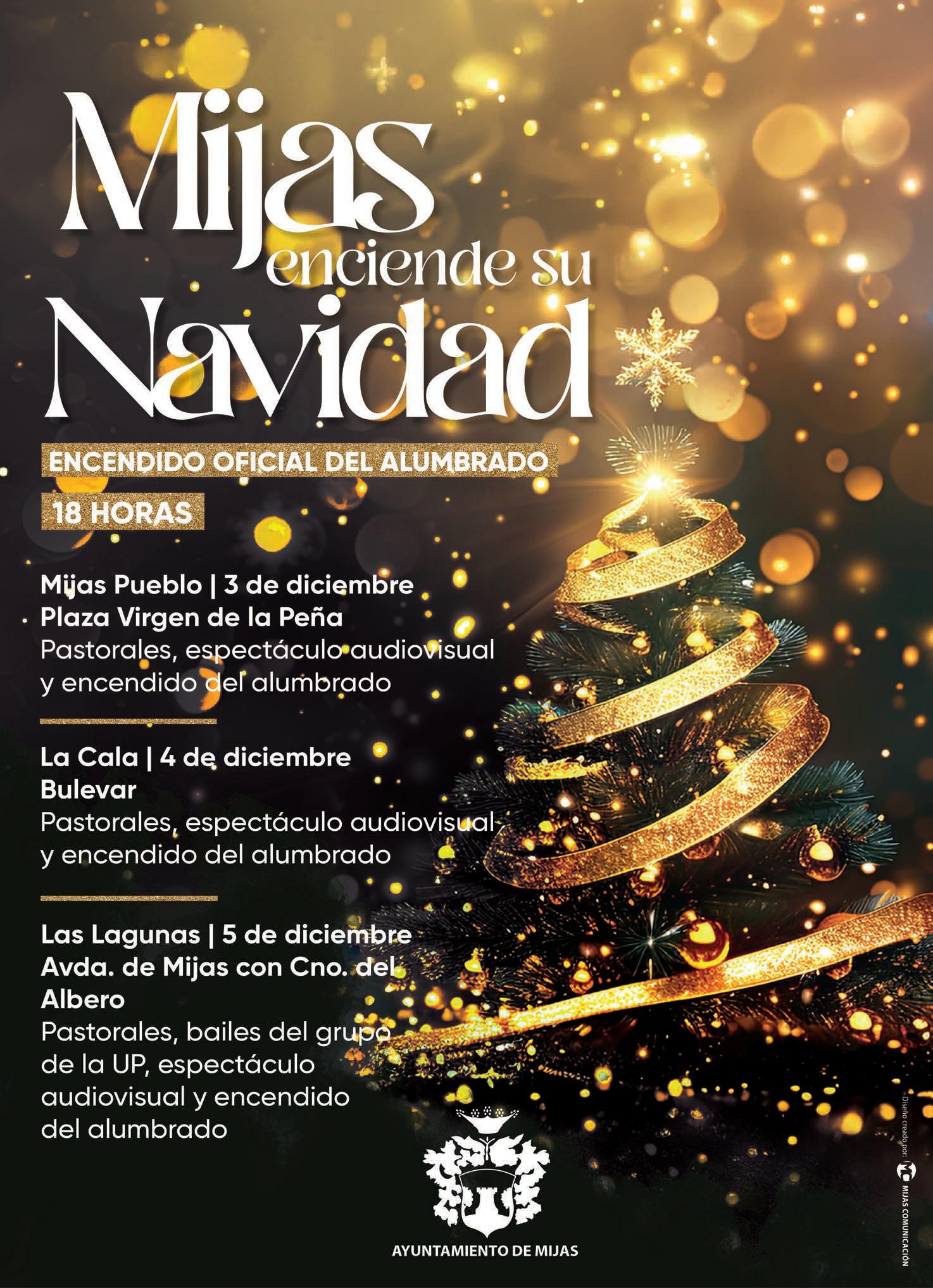El día 4 es la fecha elegida para el encendido del alumbrado artístico en La Cala. La programación continuará el día 14 con el Poblado de Papá Noel; el 19 con pastorales y el 20, habrá un cuentacuentos. Ya el día 24, la plaza del Bulevar acogerá la Tardebuena y, el 27 tendrá lugar una zambombá flamenca. El 28 será el turno del cartero real, mientras que el 31 será el momento de disfrutar con la Tardevieja