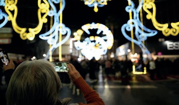 Ambiente navideño Vecinos y visitantes abarrotaron la vía, todos mirando al cielo para
