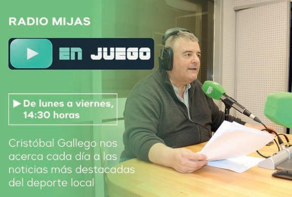 portivo ‘En juego’ continúa su andadura en Radio Mijas (107.07 FM). Cristóbal Gallego trae de lunes a viernes a las 14:30 horas toda la actualidad deportiva en directo. El programa resume las noticias más destacadas del deporte federado local, municipal y las actividades puntuales que completan la amplia oferta deportiva de la ciudad en la que no faltan el fútbol, el baloncesto o el balonmano, entre un largo etc.
