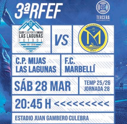 El CP Mijas-Las Lagunas de 3ª RFEF vuelve al Juan Gambero este sábado 28, a las 20:45 horas, ante el FC Marbellí. Tras varios partidos sin ver portería, los de José García quieren brindar un buen partido con goles a la afición. En la parte crucial de la sobresaliente temporada que viene realizando el cuadro lagunero, quiere seguir con el sueño de ascender de categoría.