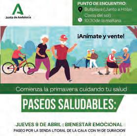 A one-hour walk along the La Cala Coastal Path. Further information: 699 876 863. Comfortable clothing, water, a hat and sunscreen are recommended