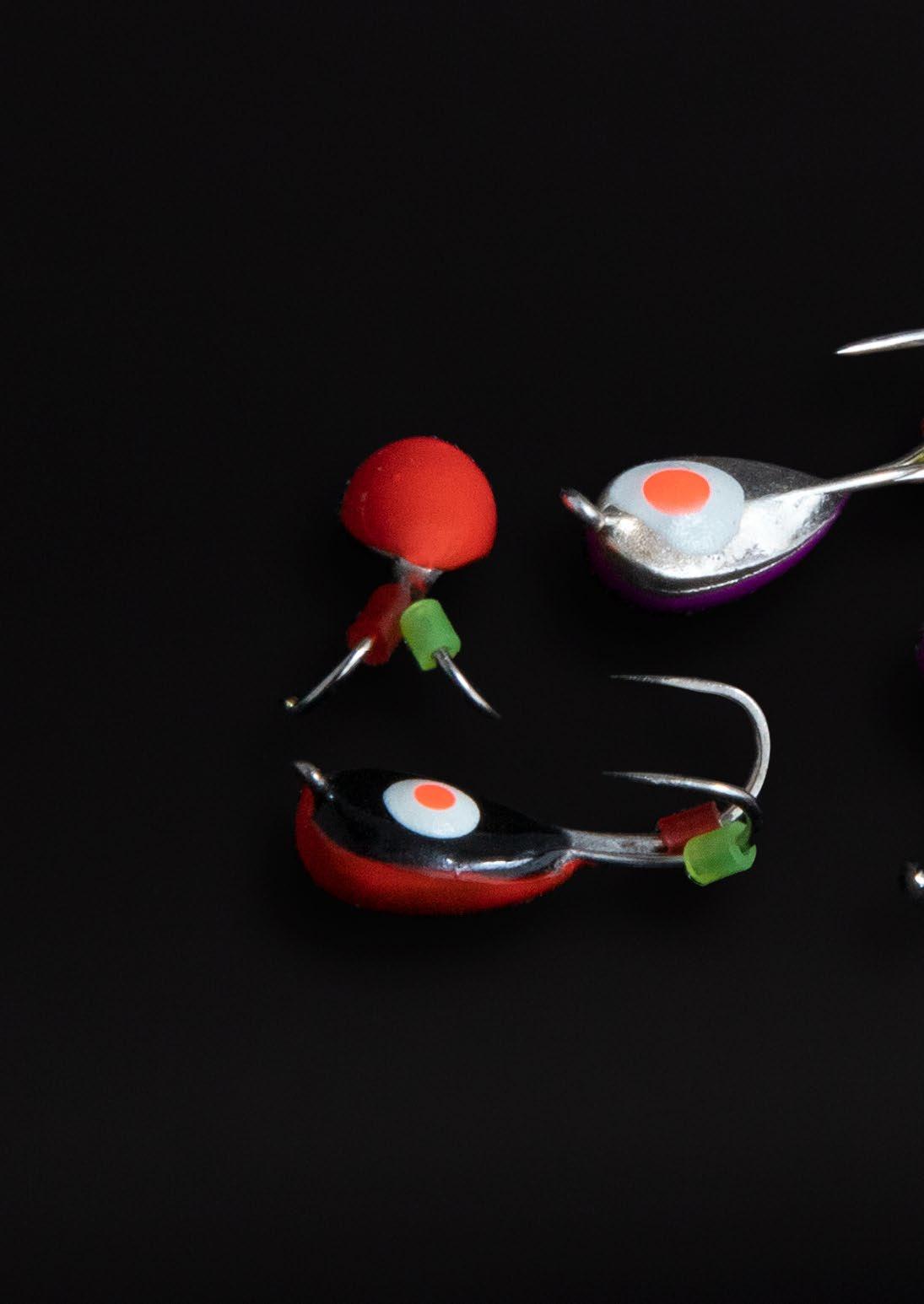 Hochwertige Mormyshkas aus dünnen, starken japanischen Hayabusa-Haken. Igelit, das durch die Mitte einer Kugel läuft, schützt die dünne Schnur vor Abrieb beim Angeln.