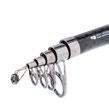 Eine hervorragende teleskopische Spinnrute, die aus hochverarbeiteten Carbonfasern IM-9 hergestellt wurde. Die Rute ist mit SiC Ringen mit hohen Ringfüßen ausgerüstet, was sogar im Regen ein problemloses Angeln ermöglicht. Sehr leicht und steif.