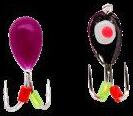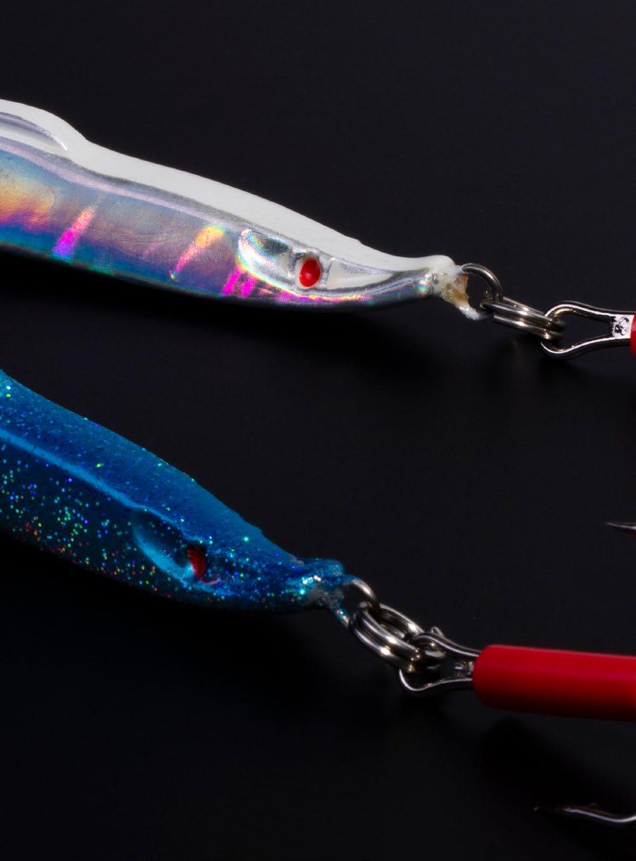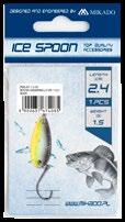 Najwyższej klasy mormyszki wykonane z użyciem cienkich i mocnych japońskich haków Hayabusa. Igielit przechodzący przez środek kulki zapobiega przecieraniu się cienkich linek w trakcie wędkowania.