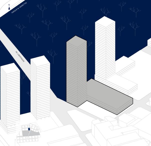 DIAGRAMA DE ÁREAS VERDES: -CONTINUIDAD DE LO VERDE CON EL PARQUE M.MORETTIN - PAUTA - AZOTEA VERDE -BASAMENTO VERDE