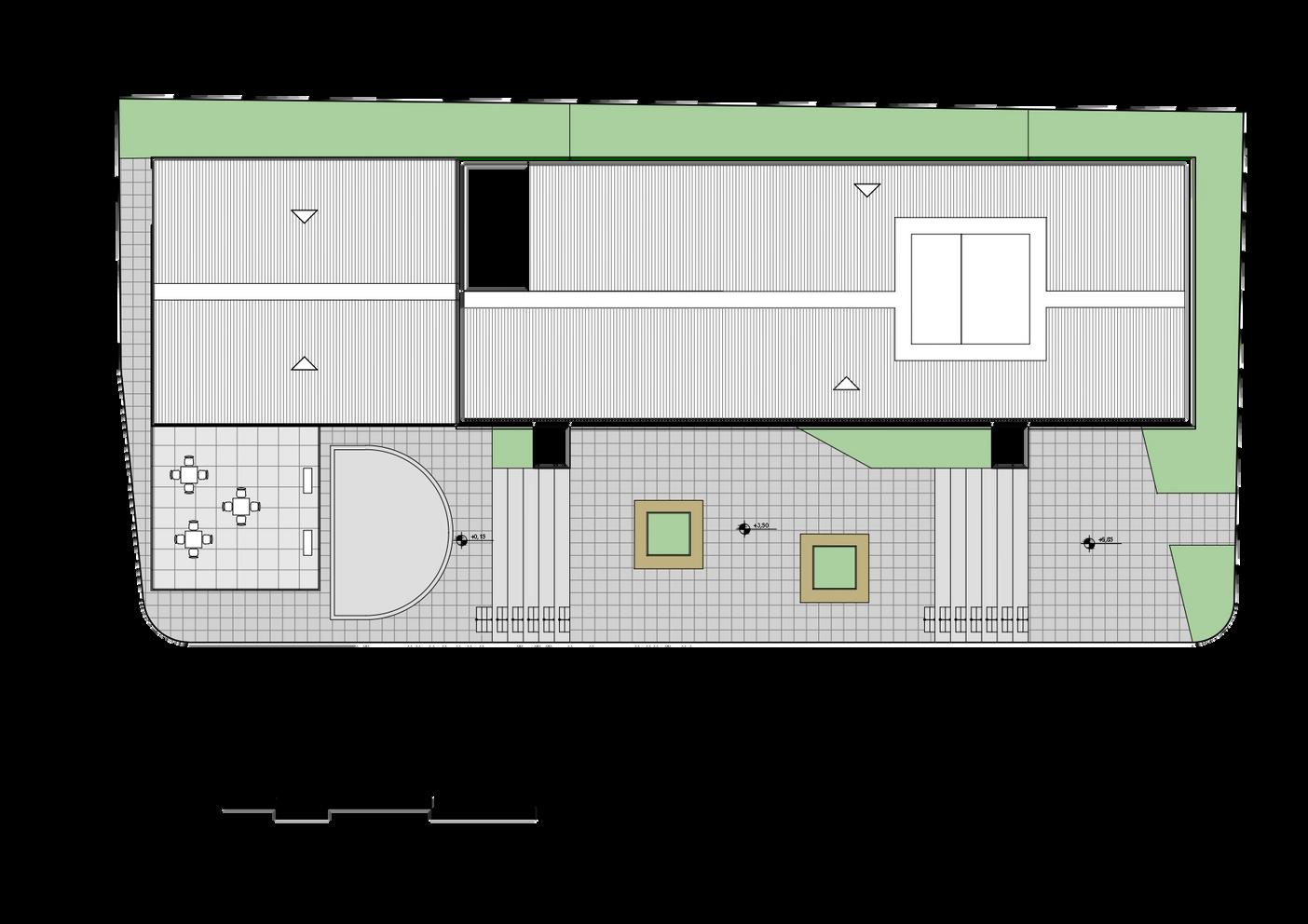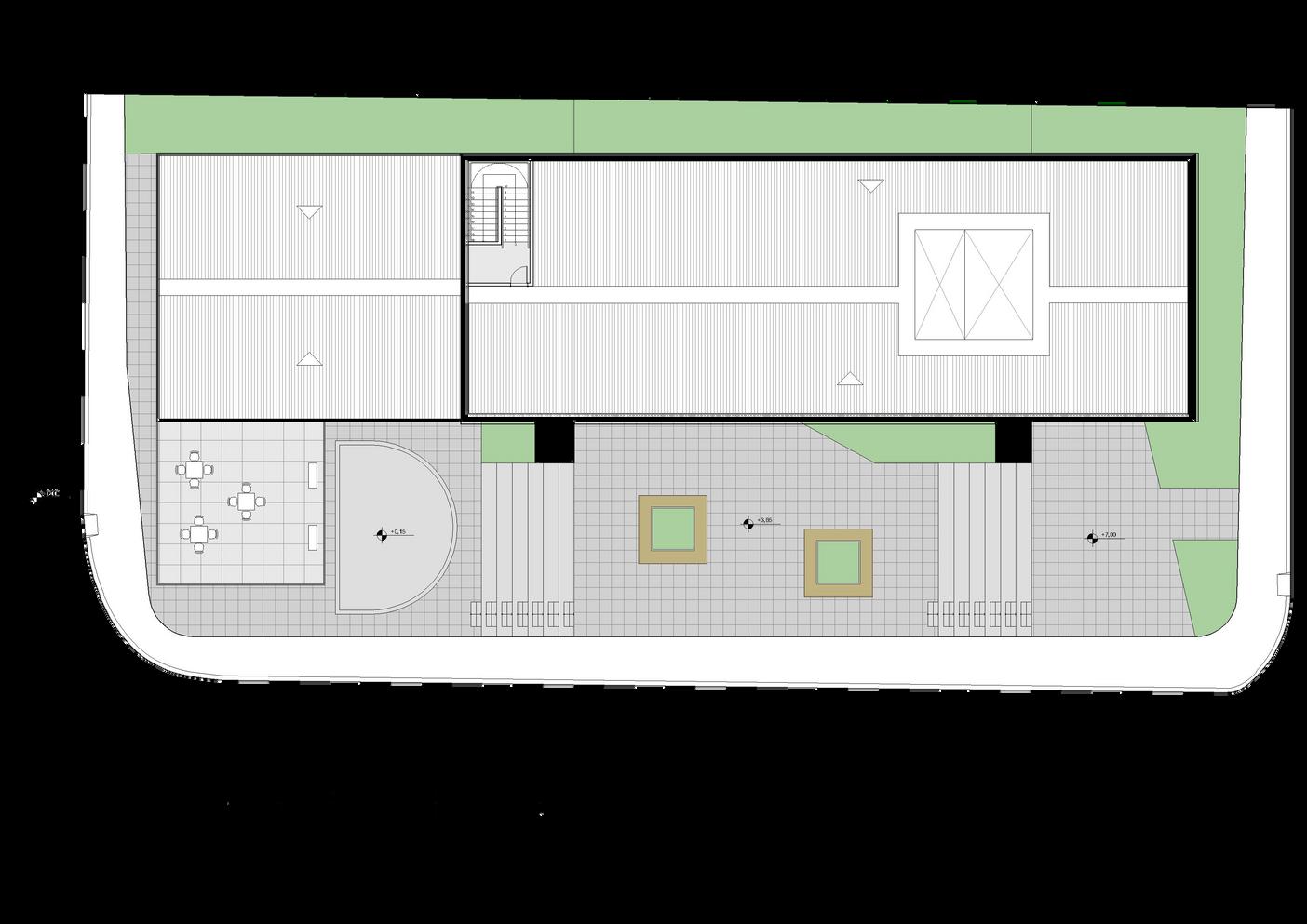 O terreno do projeto possui um declive que faz com a parte mais baixa, na Rua Major Frazão, esteja num nível 0,00, enquanto a mais alta está em um nível +6,85, na Rua Aílton Costa. Atualmente, o terreno é uma praça que se divide em 3 platôs, sendo o primero nível a +0,15, o segundo a +3,65 e o último a +7,00. Para evitar mais movimentos de terras e cortes, será usado esse níveis como base para o desenvolvimento do projeto.