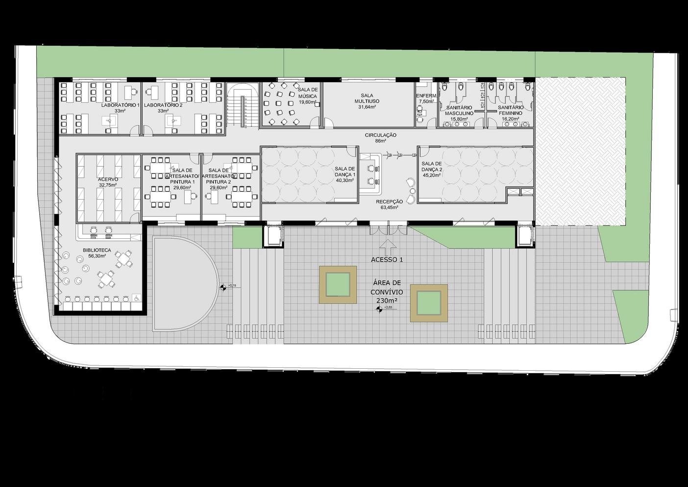 Projetar ambientes para a comunidade local e público diverso, onde serão desenvolvidas atividades educacionais, oficinas e lazer;