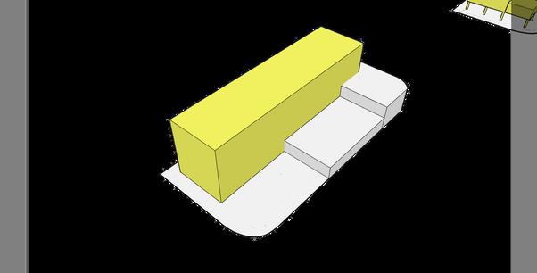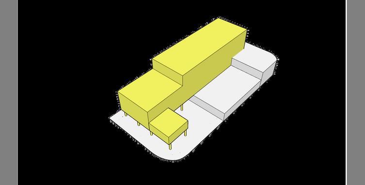 Primeiro a forma concebida como uma caixa, localizada ao final do terreno, a fim de deixar o espaço a frente livre para uso de convívio.