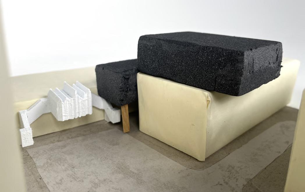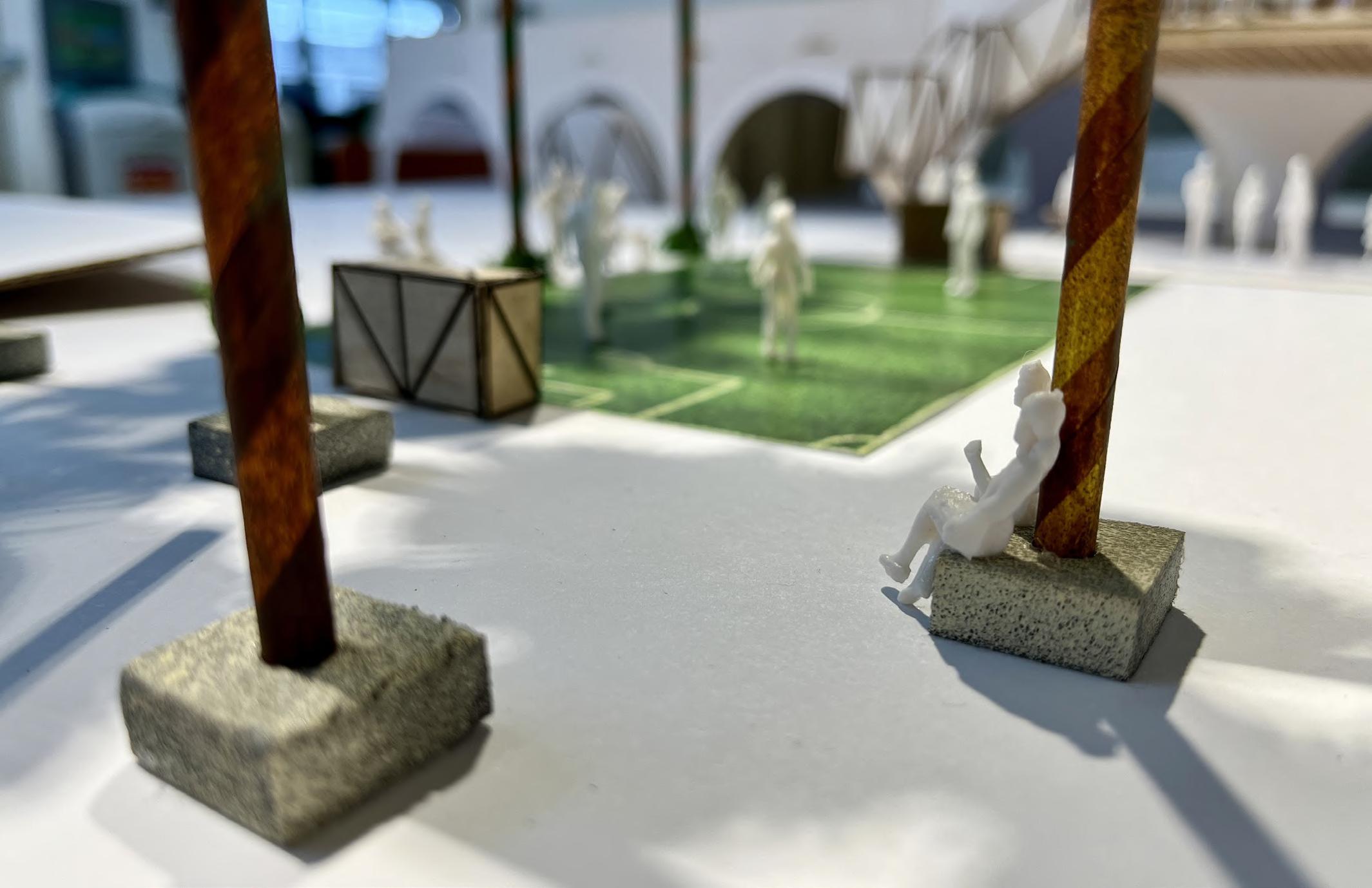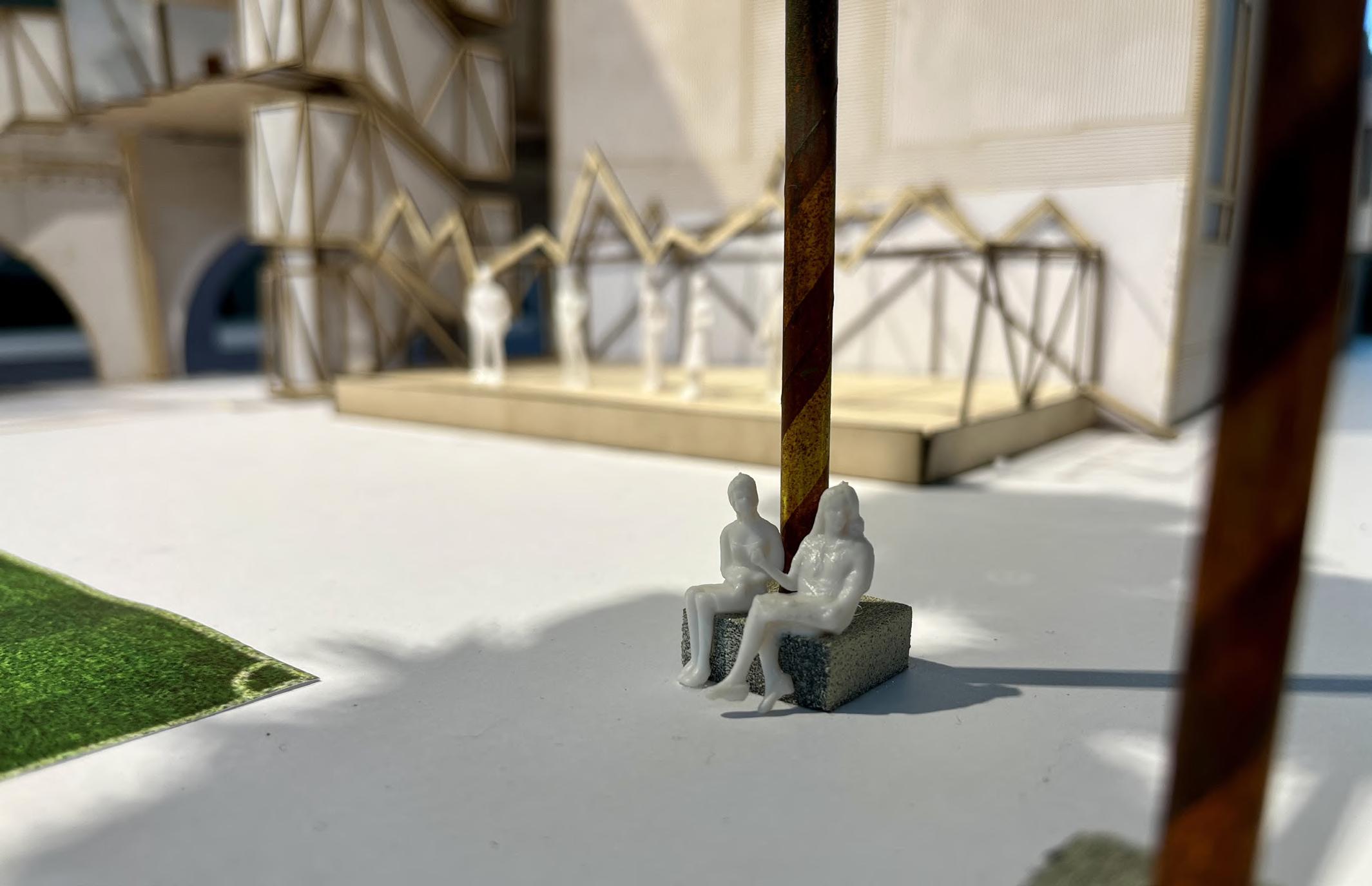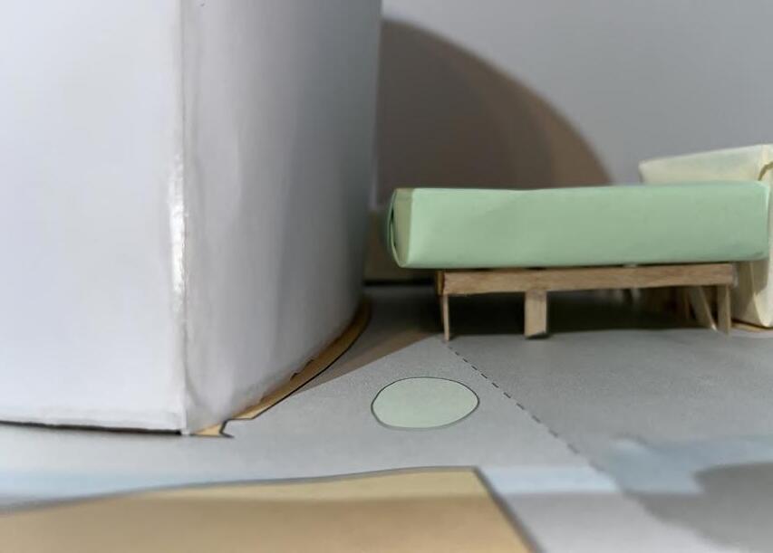 When it was time to begin designing my proposal on the site, I worked primarily in volumes to figure out an arrangement of my building. Because this project is an extension of the “Urban Living Room” I designed, I already knew what physical qualities I wanted it to have in terms of aesthetic and materiality and just needed to work through a layout.