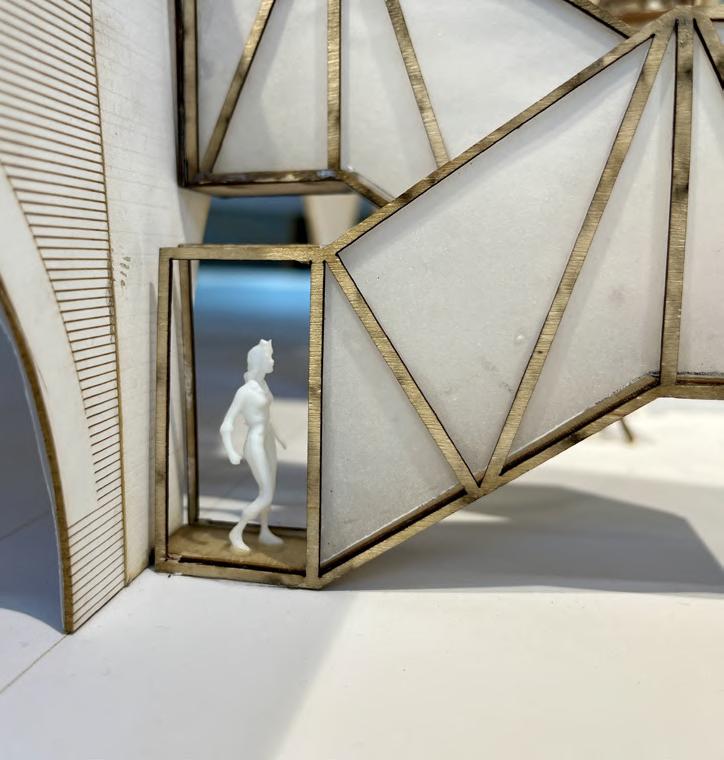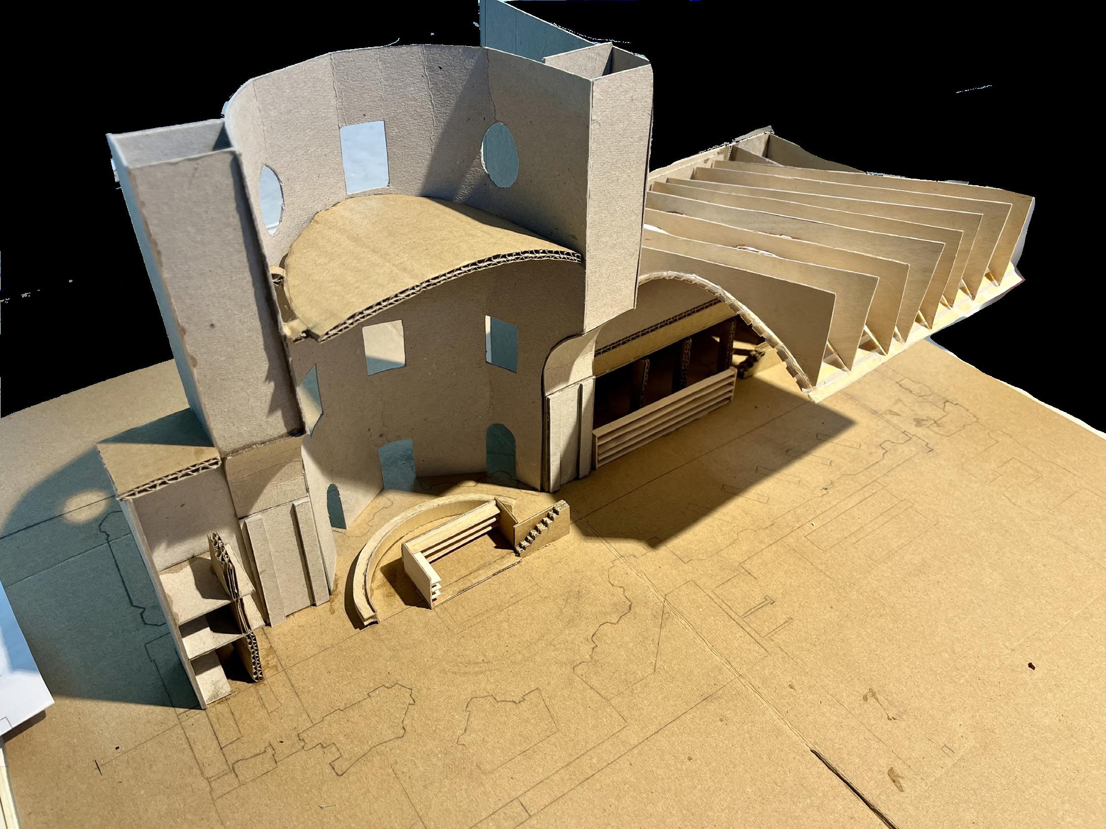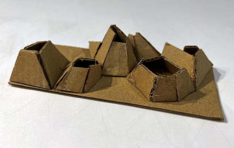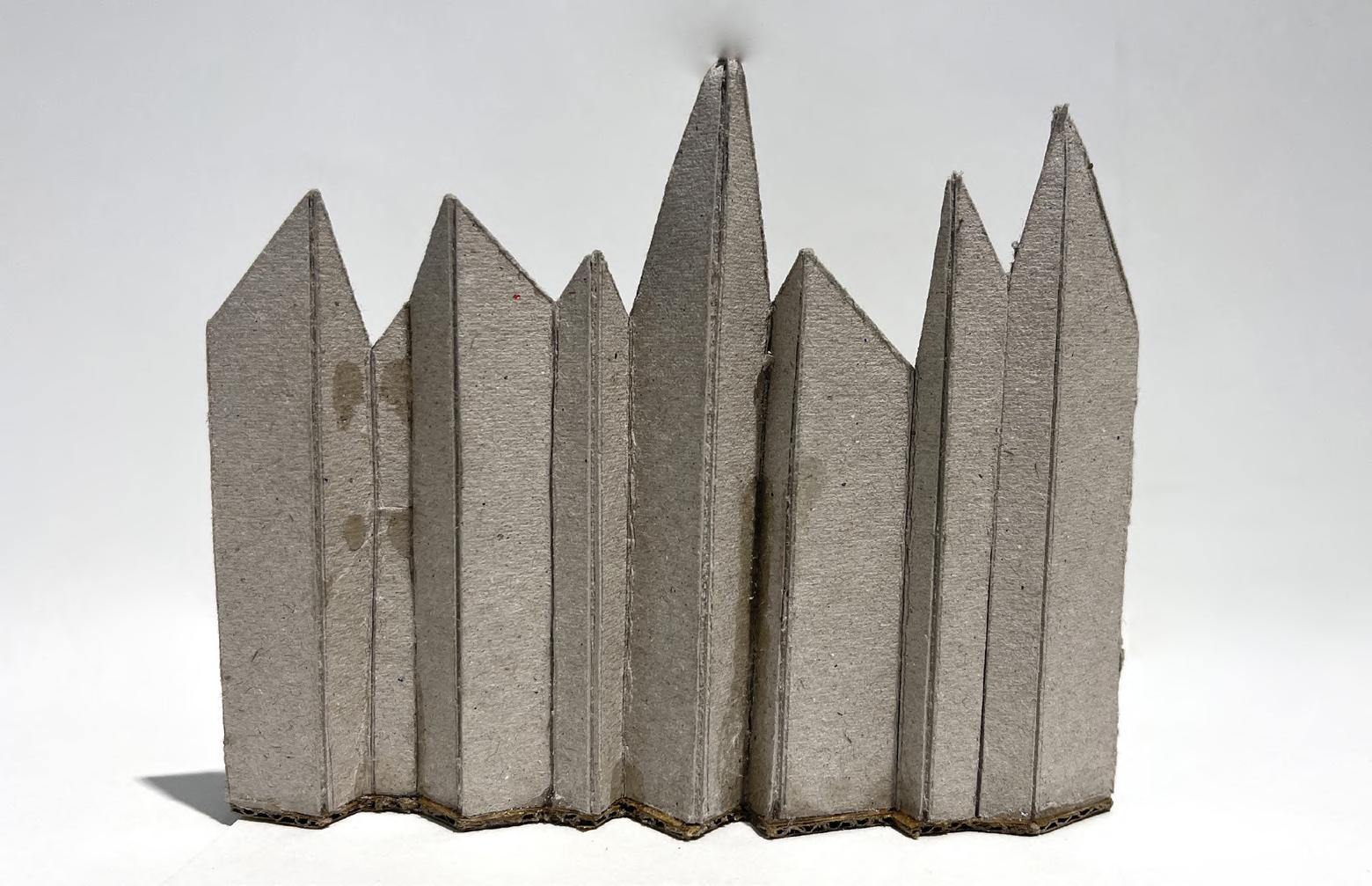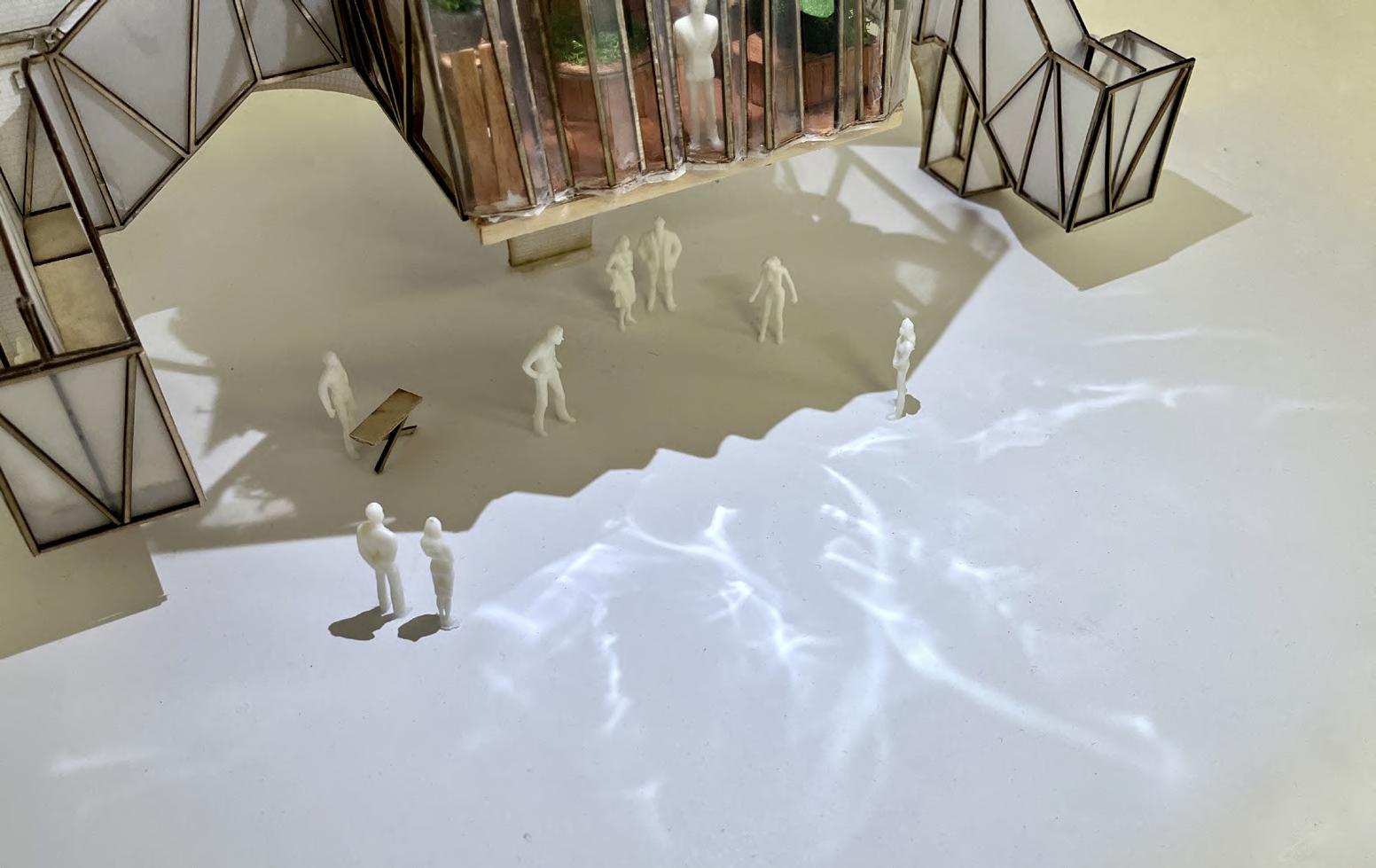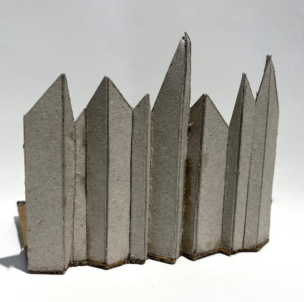 First made were simple card models to test general shapes and how well light may be able to pass. Further volumetric models were 3D printed to decide on the shape of the windows in the building.
