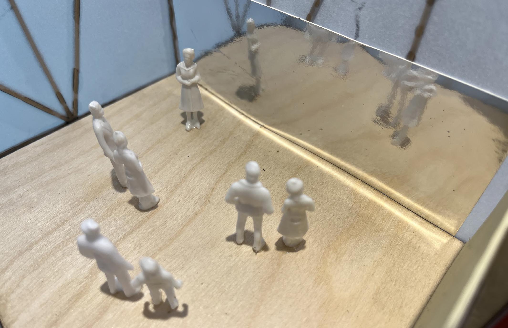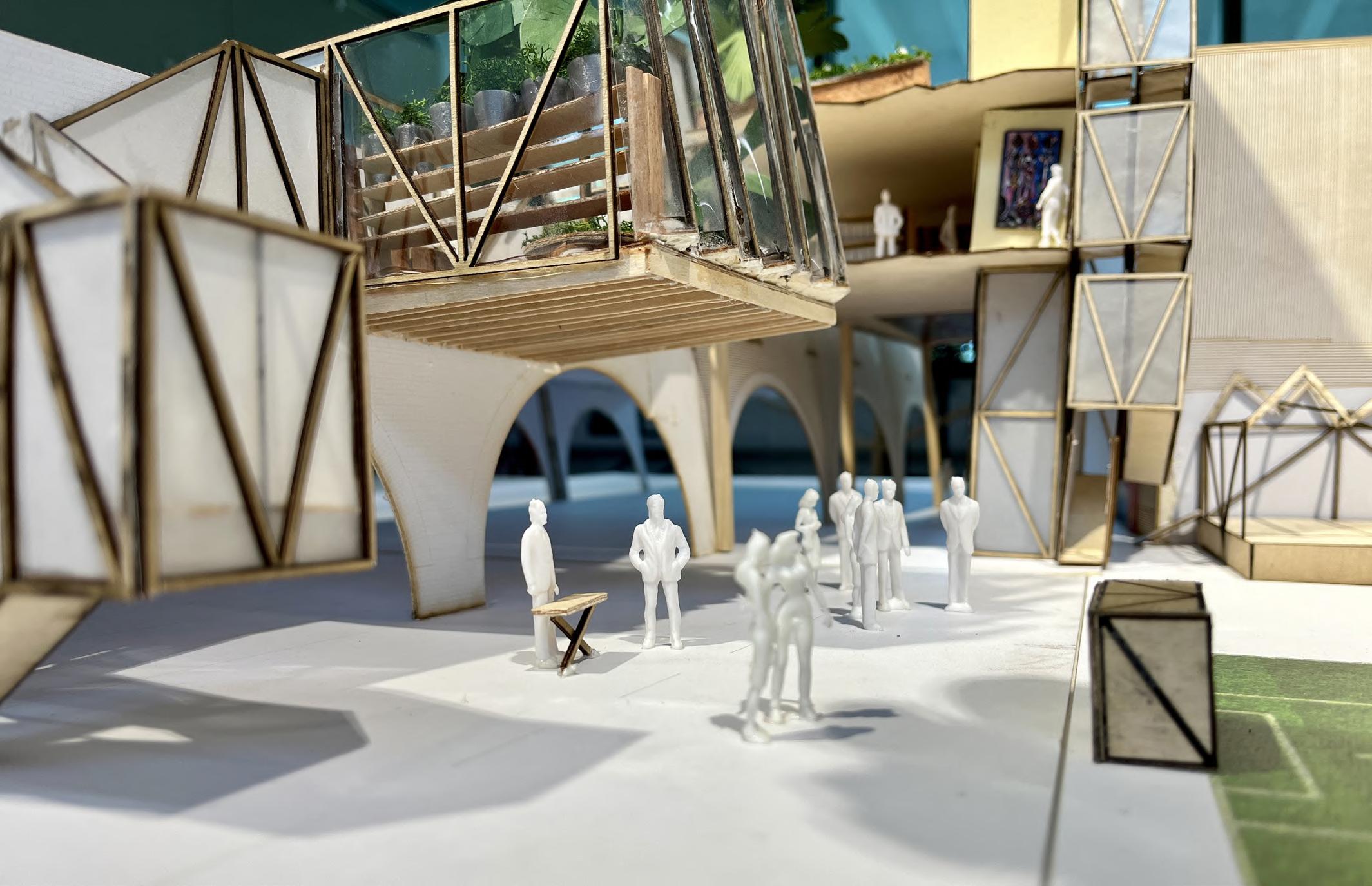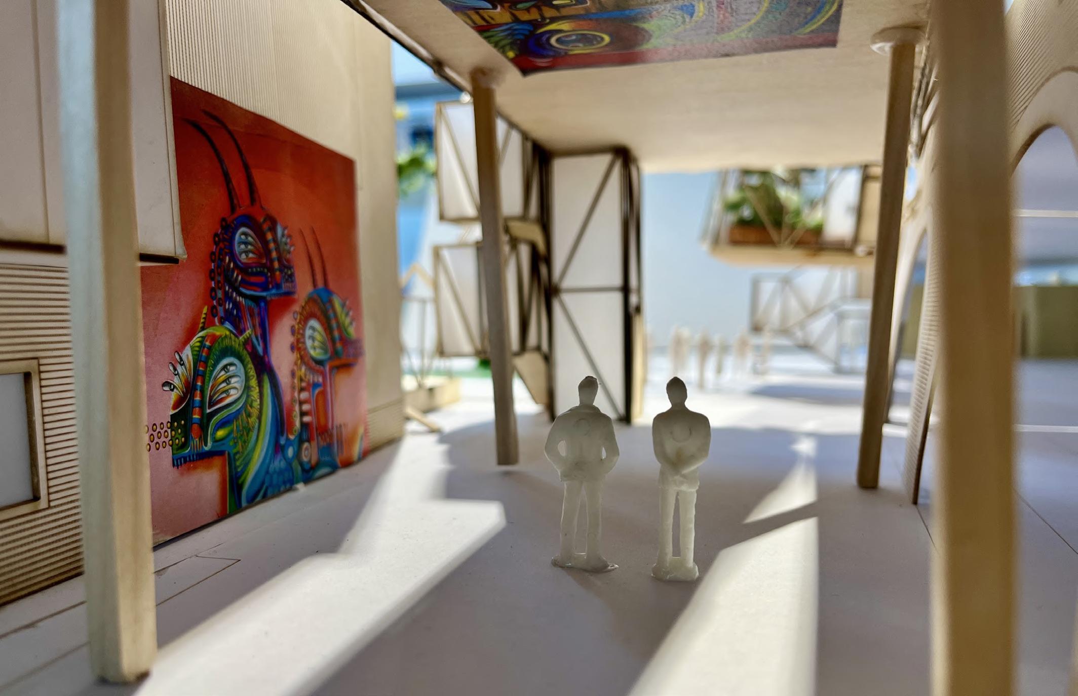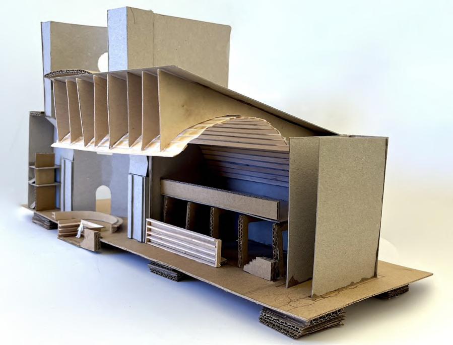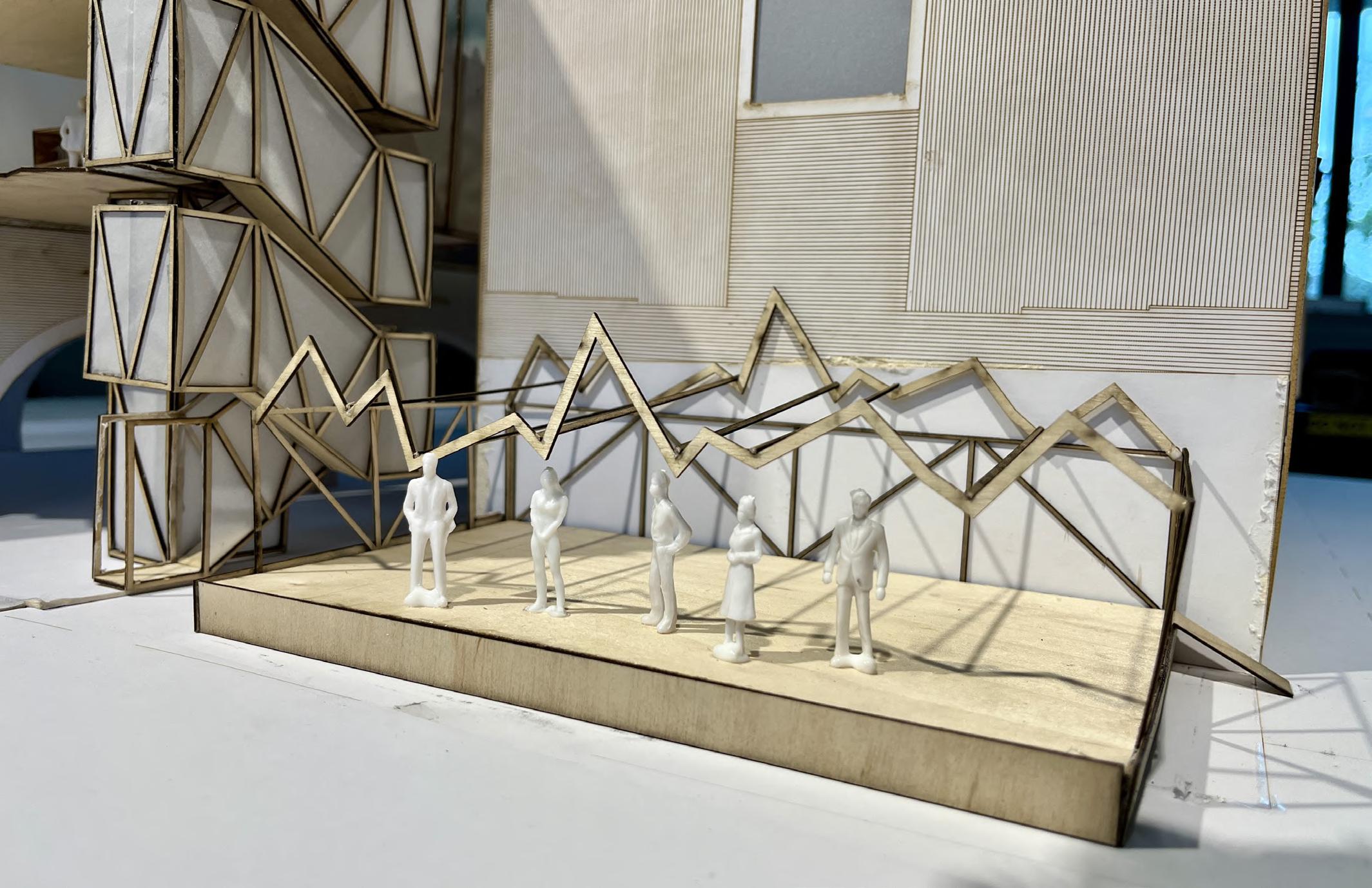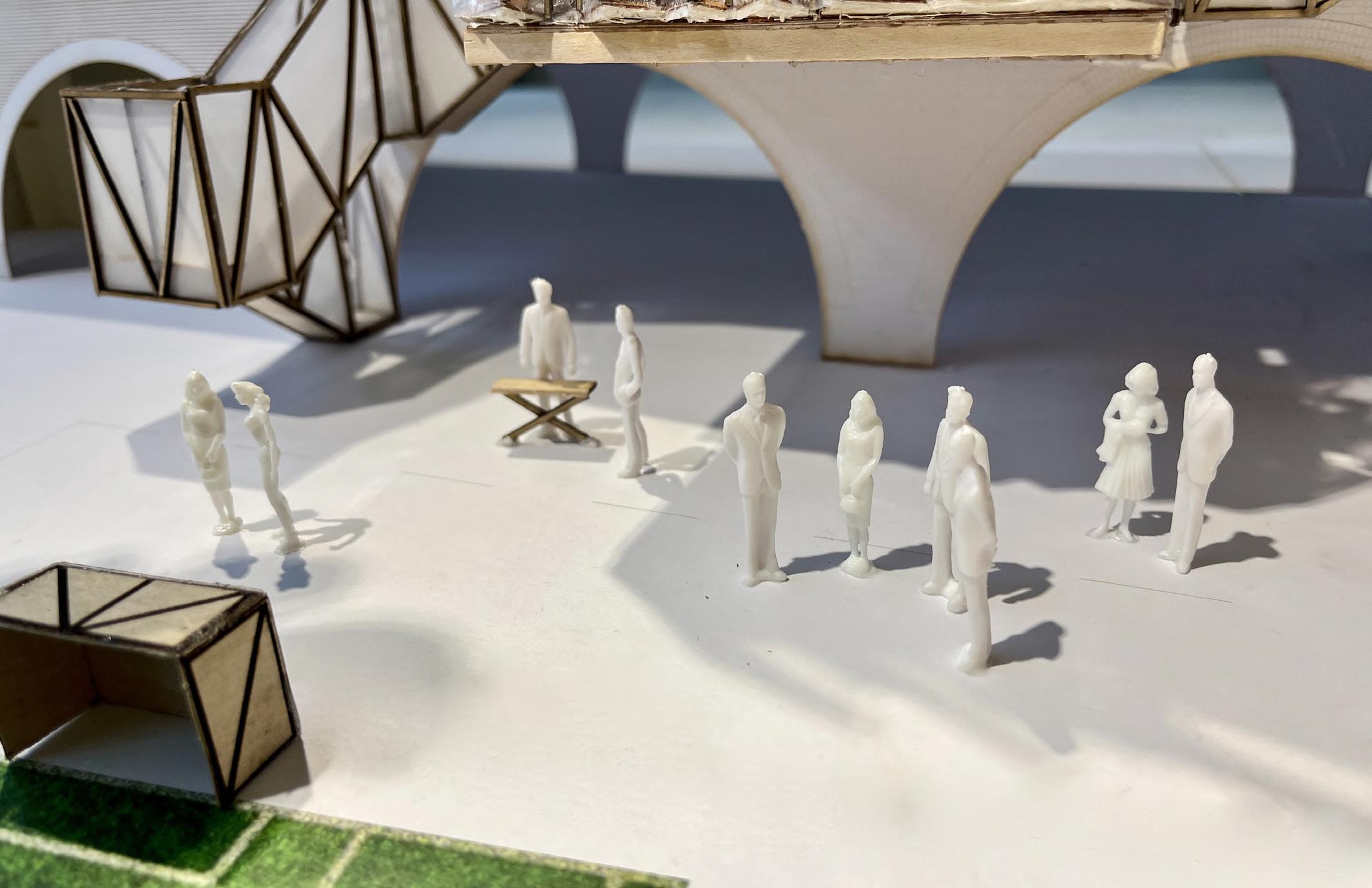 First made were simple card models to test general shapes and how well light may be able to pass. Further volumetric models were 3D printed to decide on the shape of the windows in the building.
