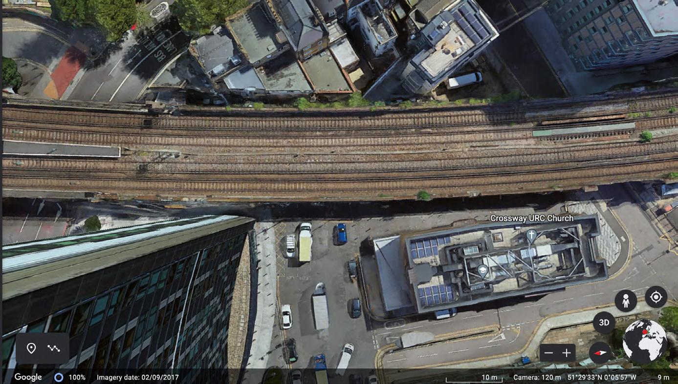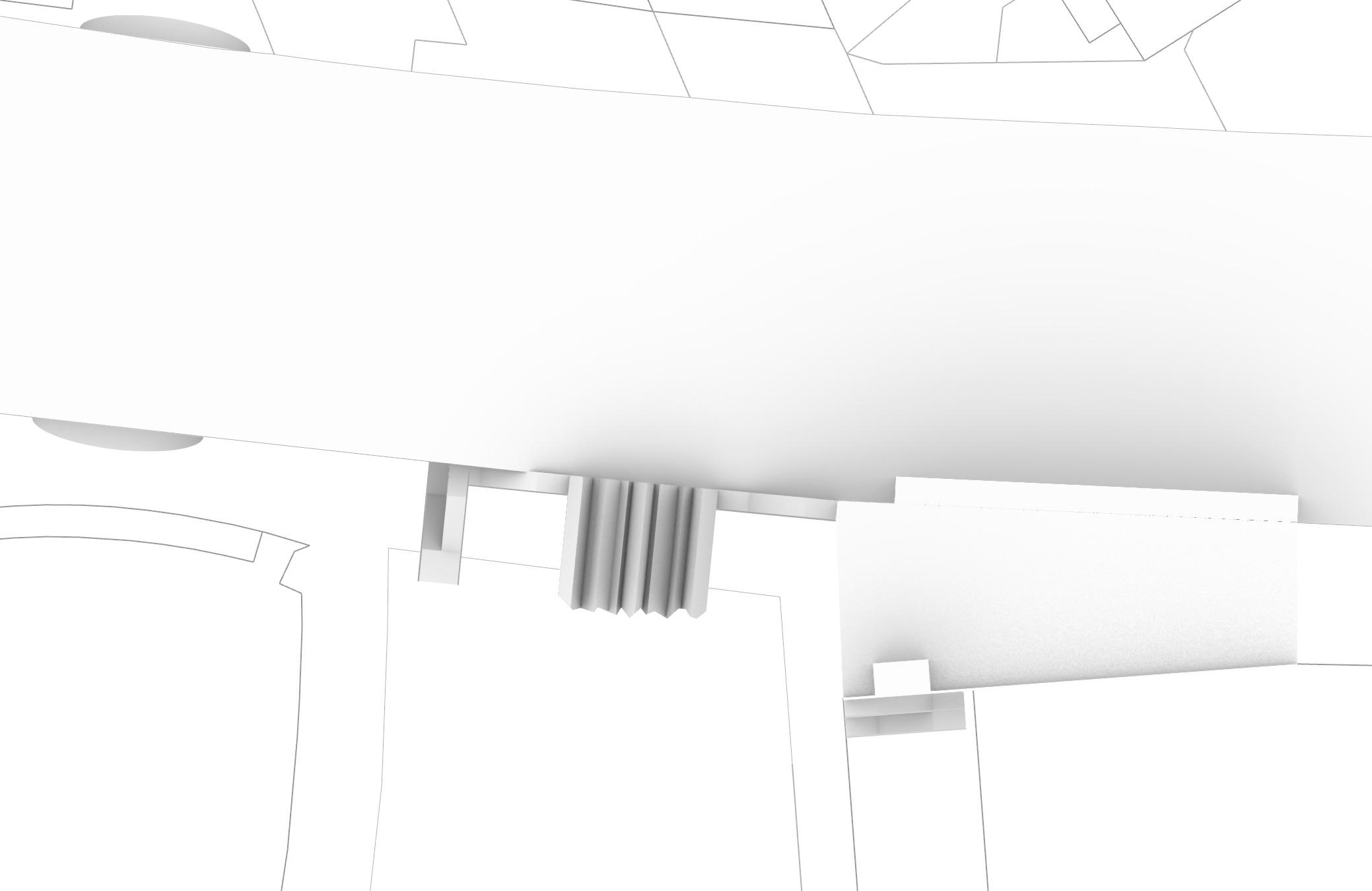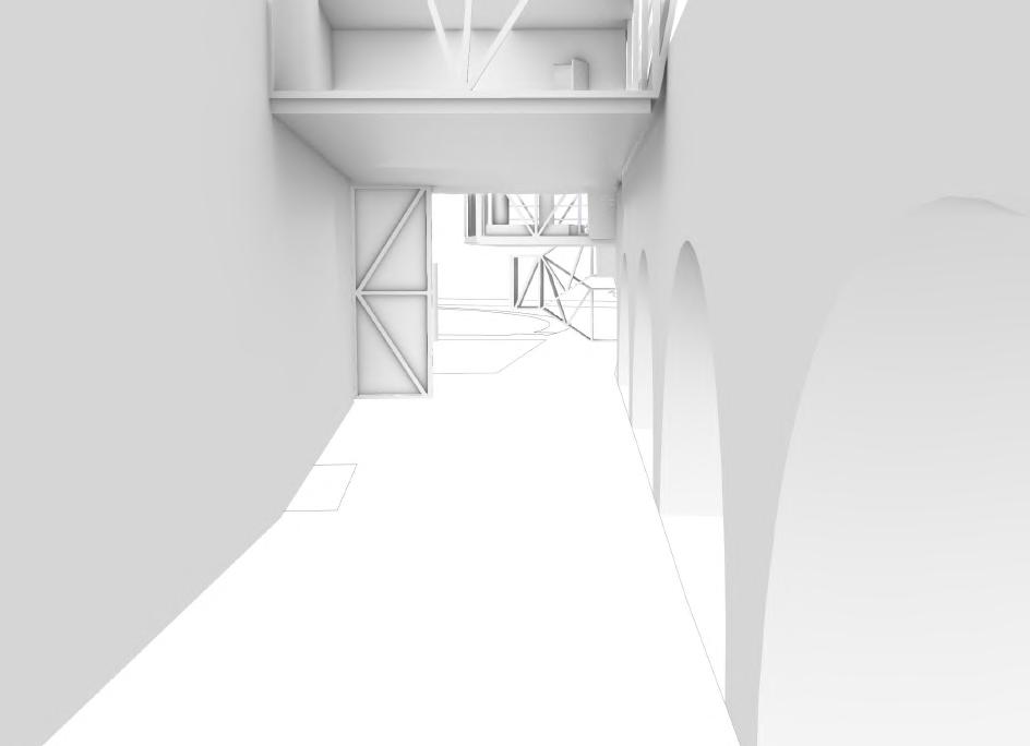 Following this “parasite” idea from the Escuela Pías case study, the proposal is fixed to the brick train bridge and neighboring United Reformed Church, employing the use of existing structures.