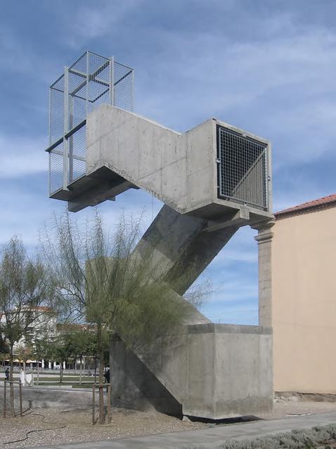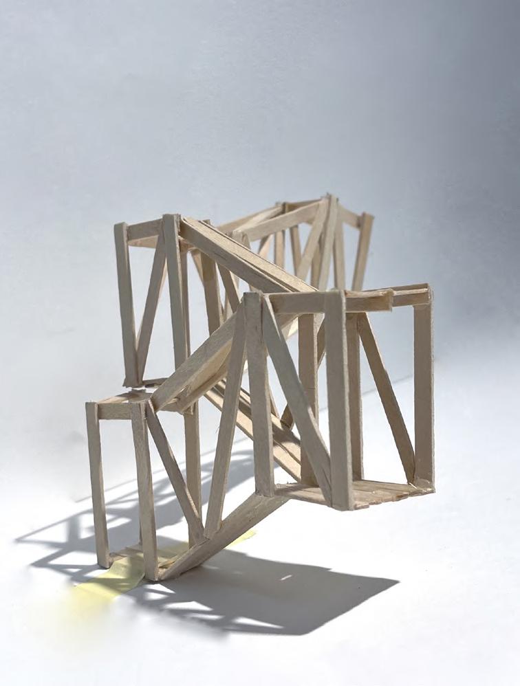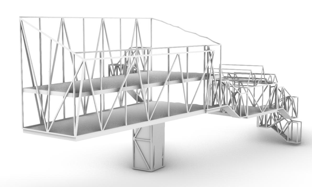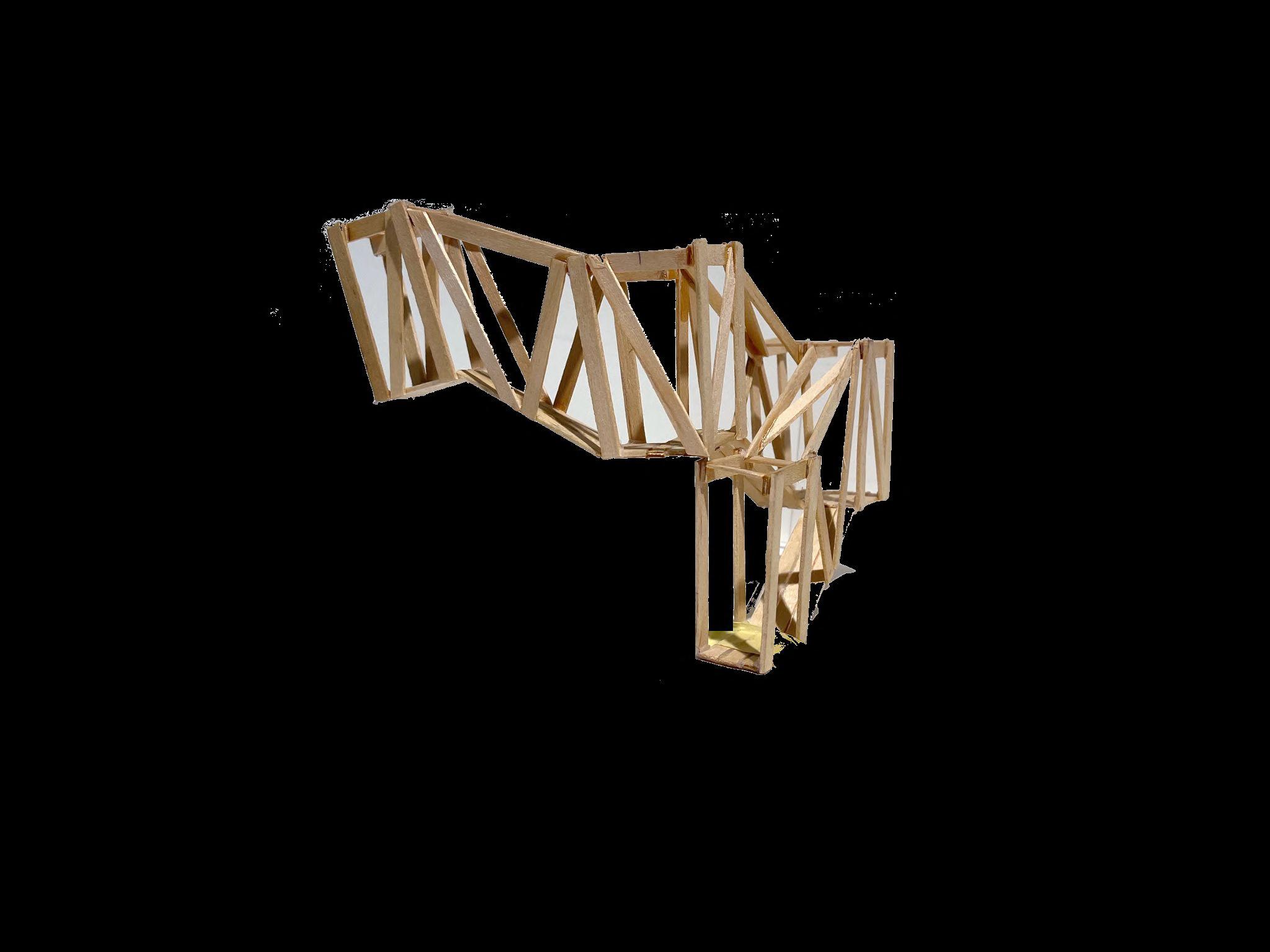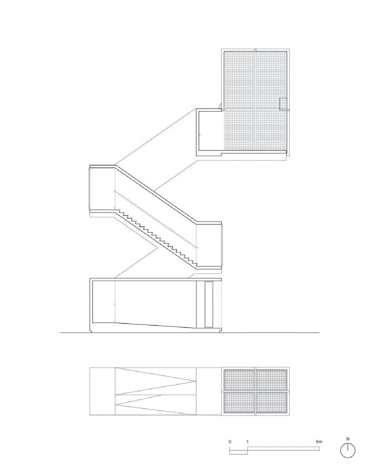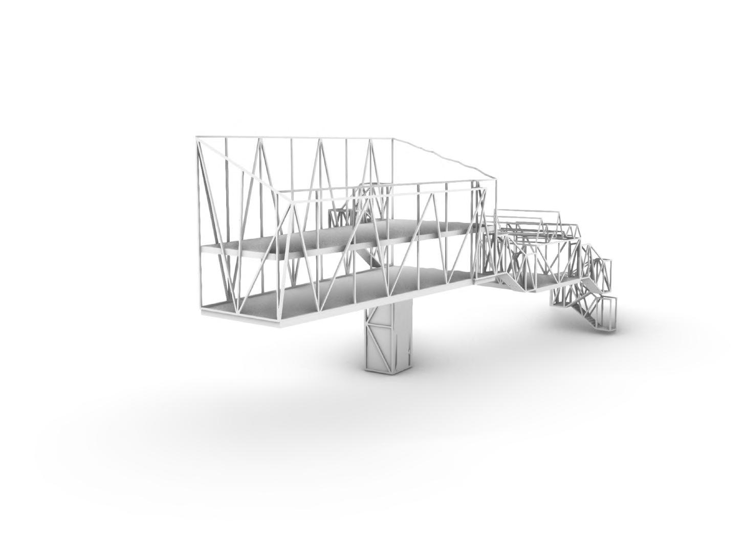 I looked at Didier Faustino’s Stairway to Heaven. It is a freestanding staircase with a small room at the top located in Castel Branco, Portugal. It was built in 2001 out of reinforced concrete with a galvanized steel structure and lattice. To better understand how the staircase needs to work for my structure, I constructed a model at my chosen scale using the Stairway to Heaven GA’s as an example. This helped me better understand the technicalities of a staircase and what would be needed to reach my elevated building. From this, can better figure out the type of staircase that best suits the needs of my project.