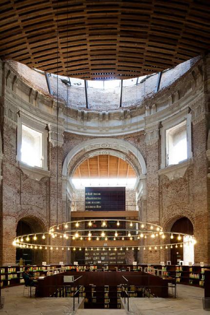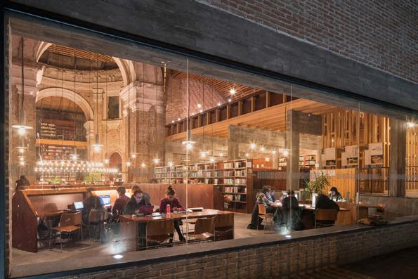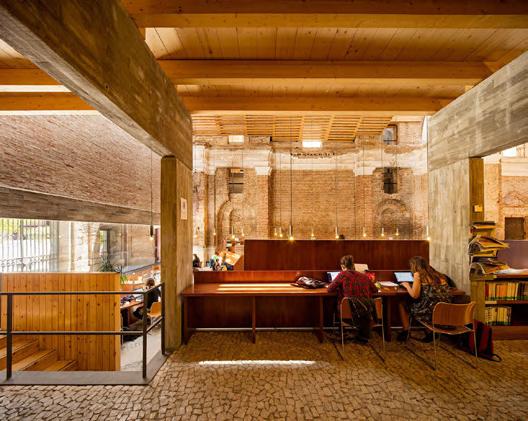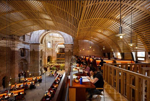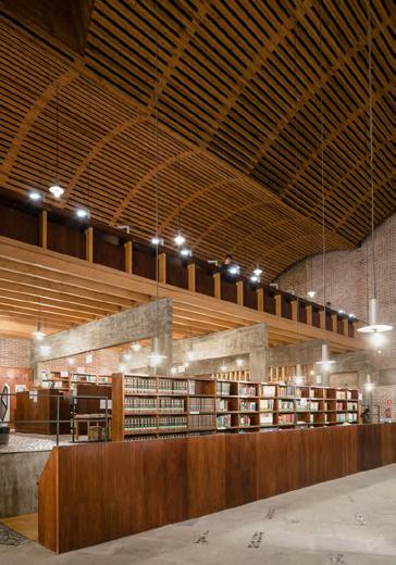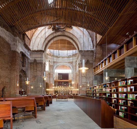 The Escuelas Pías library is within an old church that has been restored for modern use, a great example of adaptive reuse while maintaining the space’s original character. Much of the preexisting structure was used in its refurbishment in addition to newly developed areas detailed above.