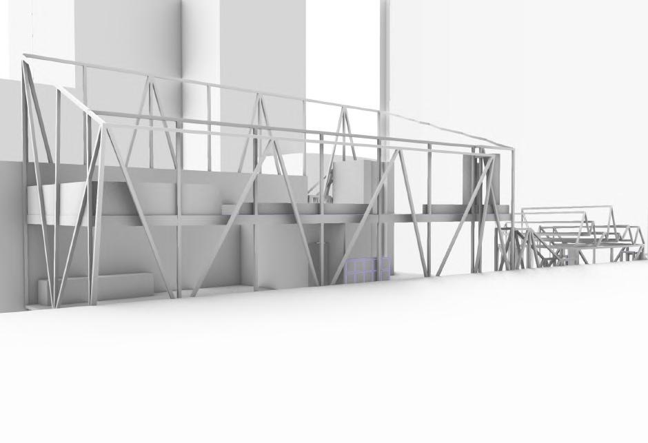 5.) The roof and north facing facade of the “wedge” was also excluded so that the top floor where the cafeteria and drinks bar are located can be removed for better visibility into the model. The roof follows the same bracing as what is seen throughout the structure and acts as a large skylight.