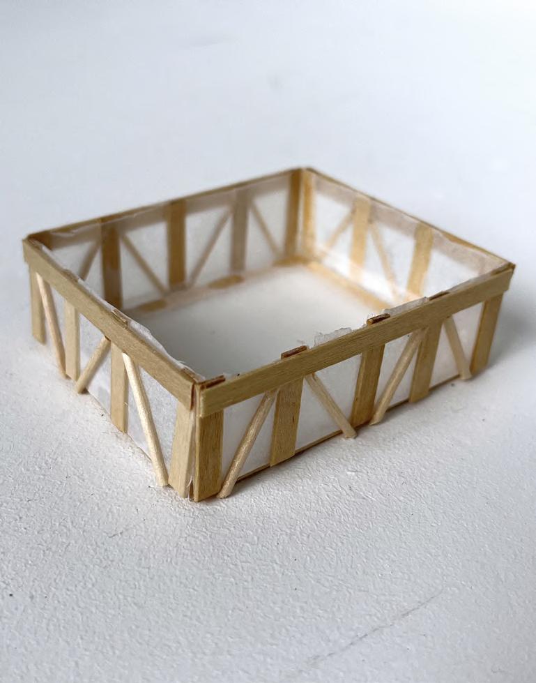 2.) When using a spotlight to imitate the sun, the facade created really beautiful reflections onto the surface below, achieving the sun catcher affect I was going for without needing to add color to the facade, which would affect the plants’ growth.