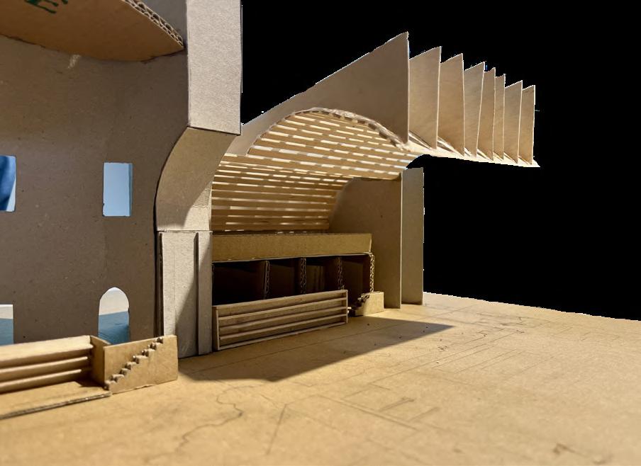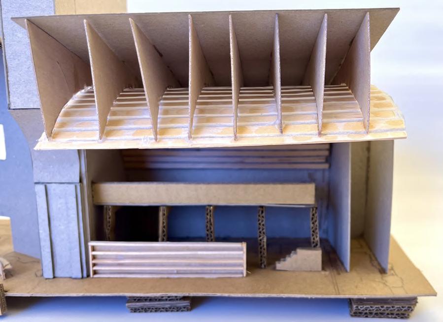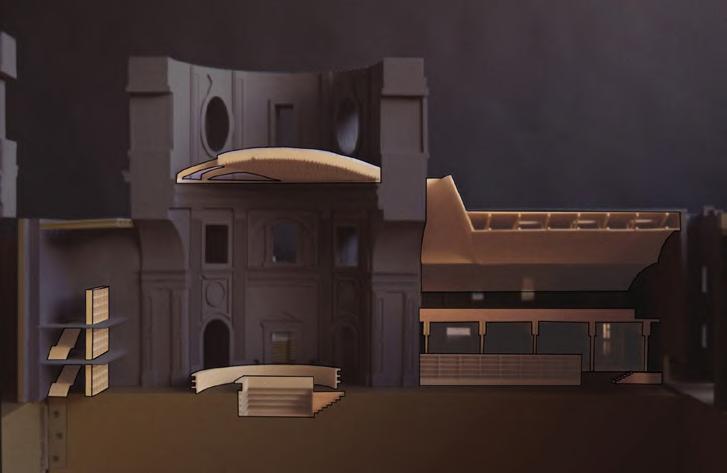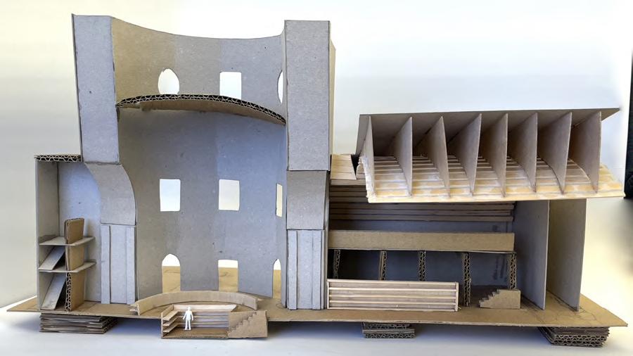 My proposal is a Latin American culturefocused community center titled “Oasis”. It is a site in the middle of a loud, metropolitan area that brings comfort and familiarity. Additionally, the word “oasis” is a cognate-it is the same in both English and Spanish, metaphorically bridging the gap between the two cultures. Drawing inspiration from the Escuela Pias case study and it’s “parasitic” refurbishment, I have created a building that sits tucked away from the busy Walworth Road and Elephant and Castle junction but still in a central proximity to the community. The project is comprised of six main areas, two of which are located in the same volume, on the floor above. The purpose of the project is to provide a space full of qualities and media that make up the Latin American culture. In this space, you can explore a variety of media specific to the culture through literature, music, games, art, dance, and film.