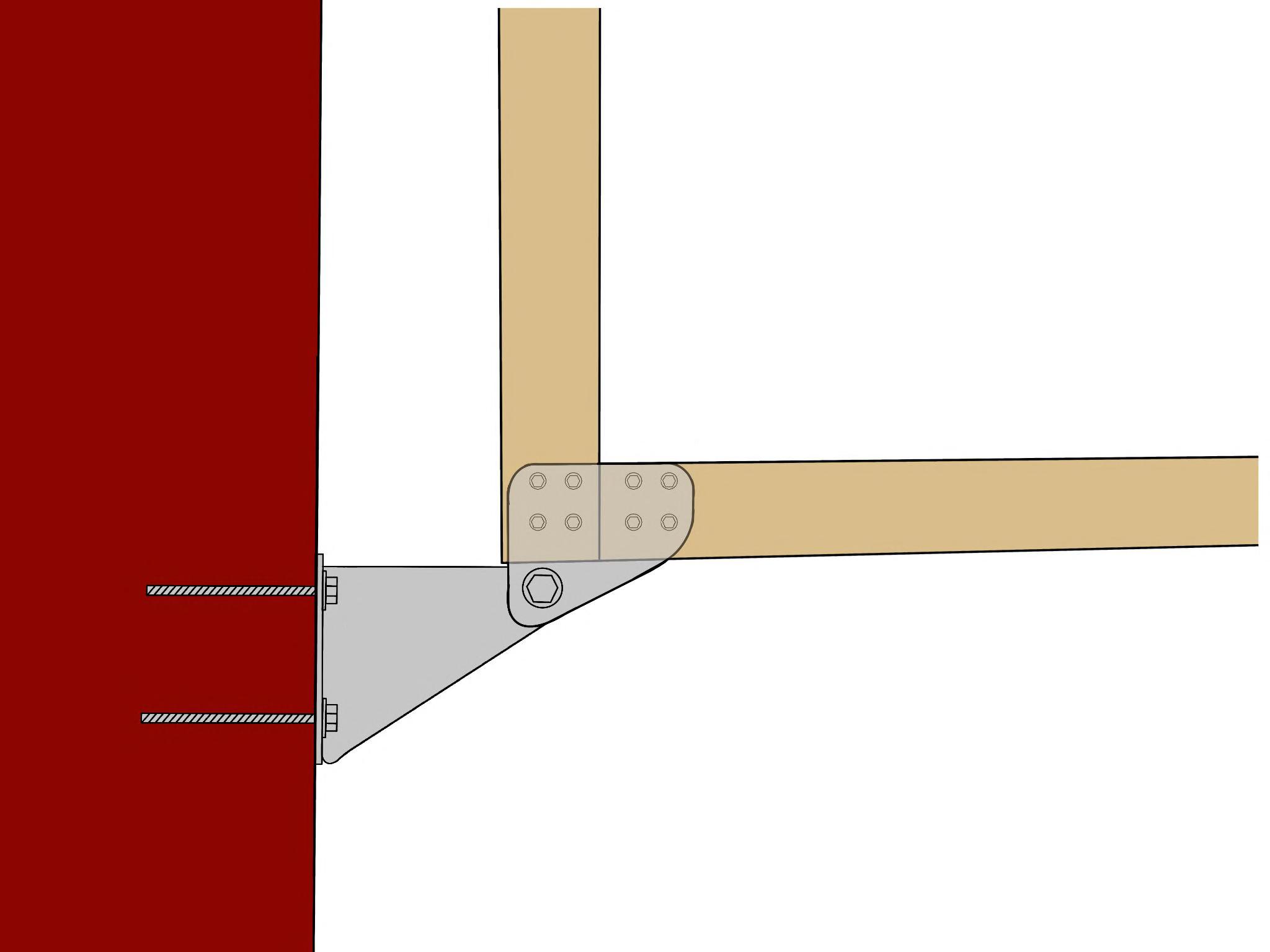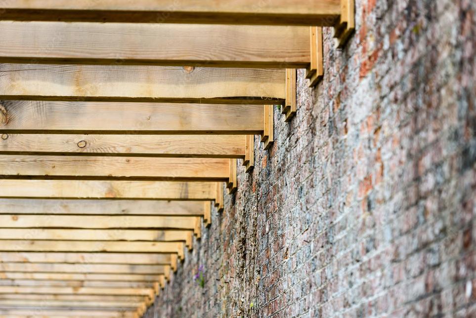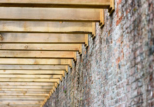 As highlighted in Figure 3, the structure will be attached to the church and railway bridge for additional support. looked at how timber might attached to the brick (Figure 4) and found many examples of wooden pergolas constructed off the side of a house (Figure 5). This was a good starting point however these pergolas were not weight bearing and I therefore needed to look into something that could support a larger load.