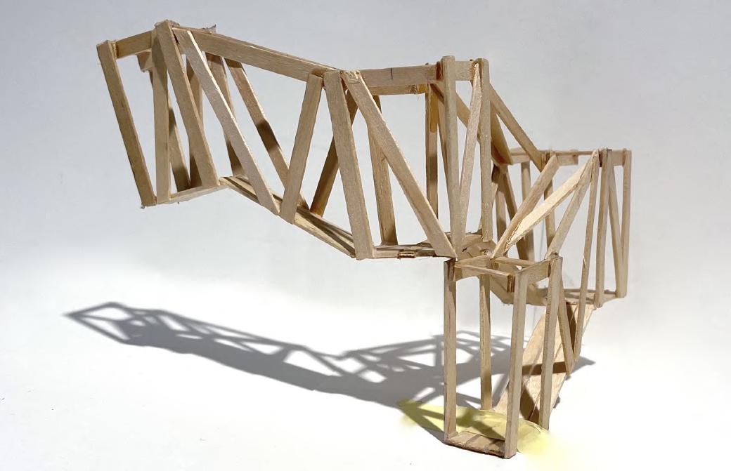 first began with modeling the staircase of this timber structure to better understand its strength and discover where additional beams or bracing are needed to strengthen the structure.