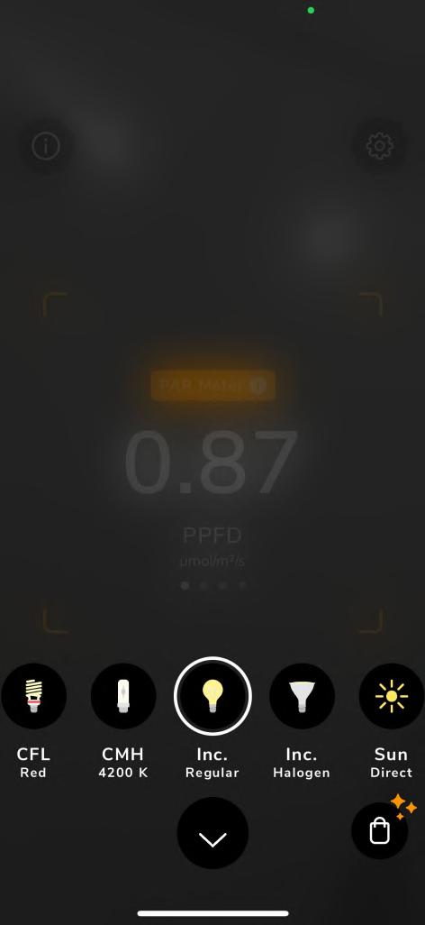 PAR meters are sold at a very high price and unfortunately the FabLab does not have any to be rented out. After doing some research, found the app Photone - Grow Light Meter, one of the only apps available for iOS that measures PPFD for PAR. It was tested for accuracy against other light measuring apps using lab equipment and proved itself to be reliably accurate. The results of their experiment can be found here: https://growlightmeter.com/th e-best-light-meter-app-for-pla nts/