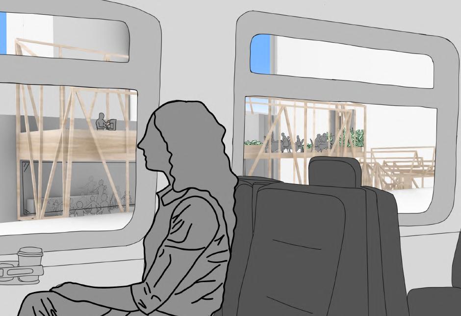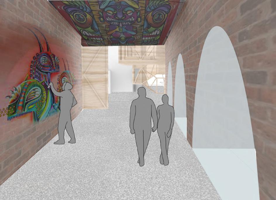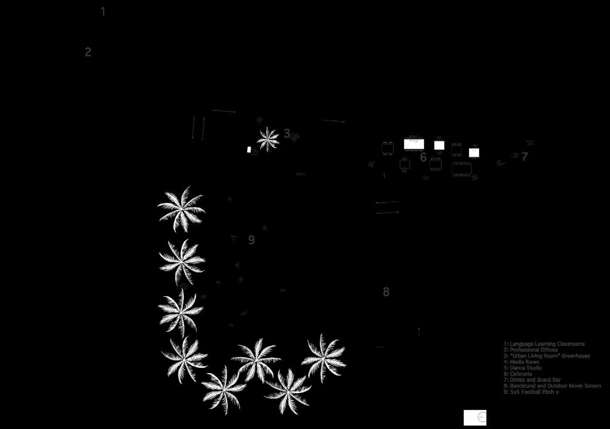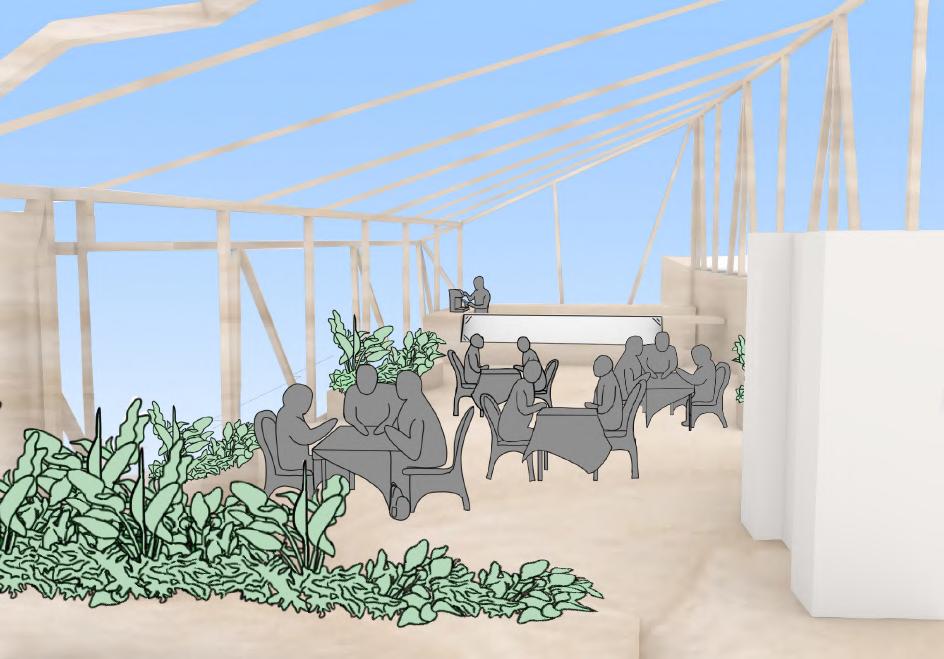 The facade is a combination of frosted and transparent polycarbonate, allowing for increased natural light to illuminate the space and thus not relying solely on electricity for artificial lighting. In future design development of this project, there is a potential for rainwater collection to be explored to be reused in watering the plants within the proposal. The spaces of the proposal can all be used for a variety of activity however should the building need to be taken down, it was designed to be constructed with mechanical fixtures, meaning it could be disassembled in the future and the material easily recycled.