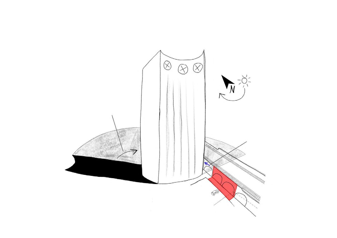 The location of the building was fit to receive the best sunlight on the site. The proposal was set into a difficult site with many restrictions informing the size and arrangement of the proposal and in how the spaces were later divided up creating a building that is well suited and optimized to its purpose and its size.