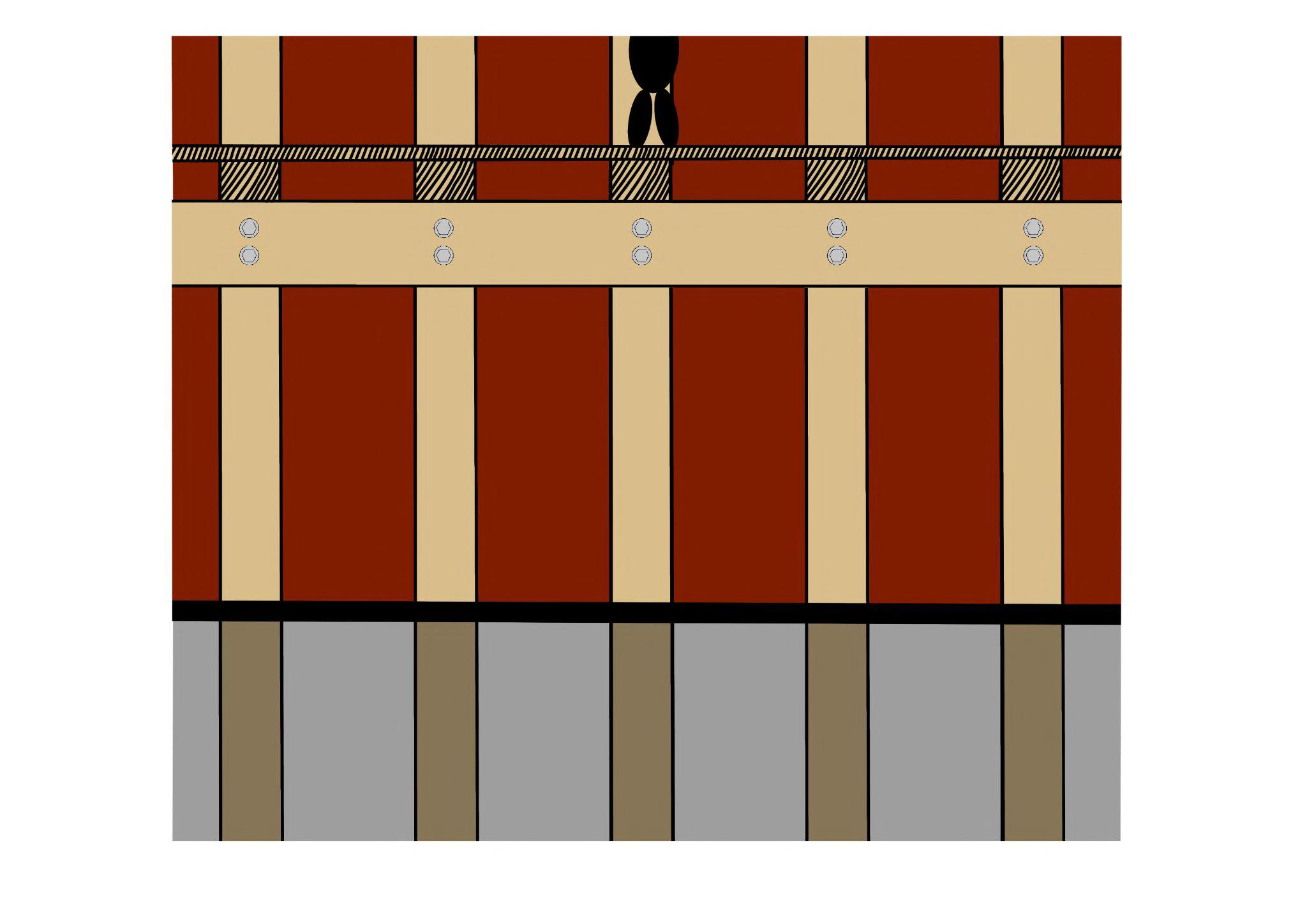 Because the proposal is designed to appear as a delicate framing, the materials used are very important to constructing a strong and sturdy structure. I liked the natural qualities of wood and the way it simultaneously compliments both the harsher brick of the surrounding built environment and the soft greenery and foliage within the building leading me to select Laminated Veneer Lumber, or LVL, as the structural material choice (Figure 7). LVL is an engineered lumber made through a process very similar to plywood in that it is multiple layers of wood connected with adhesives to create stronger beams. It is comparable to glue laminated timber but can tolerate higher amounts of stress. It is less likely to warp than typical timber. “The high load-bearing capacity of [LVL] reduces dimensions and cross-sections in timber construction - that means more space and lower material consumption.”