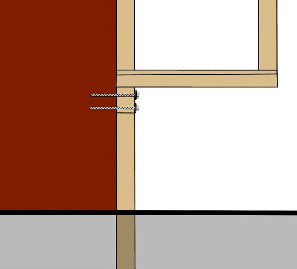 drew a different connection using a standardized influence but felt that the arrangement of the steel flitch plates in Figure 14 left an awkward gap between the proposal and the brick side, which would also reduce the floor area inside the proposal itself. To try and amend this, I thought about how the fixing could possible be set within the brick