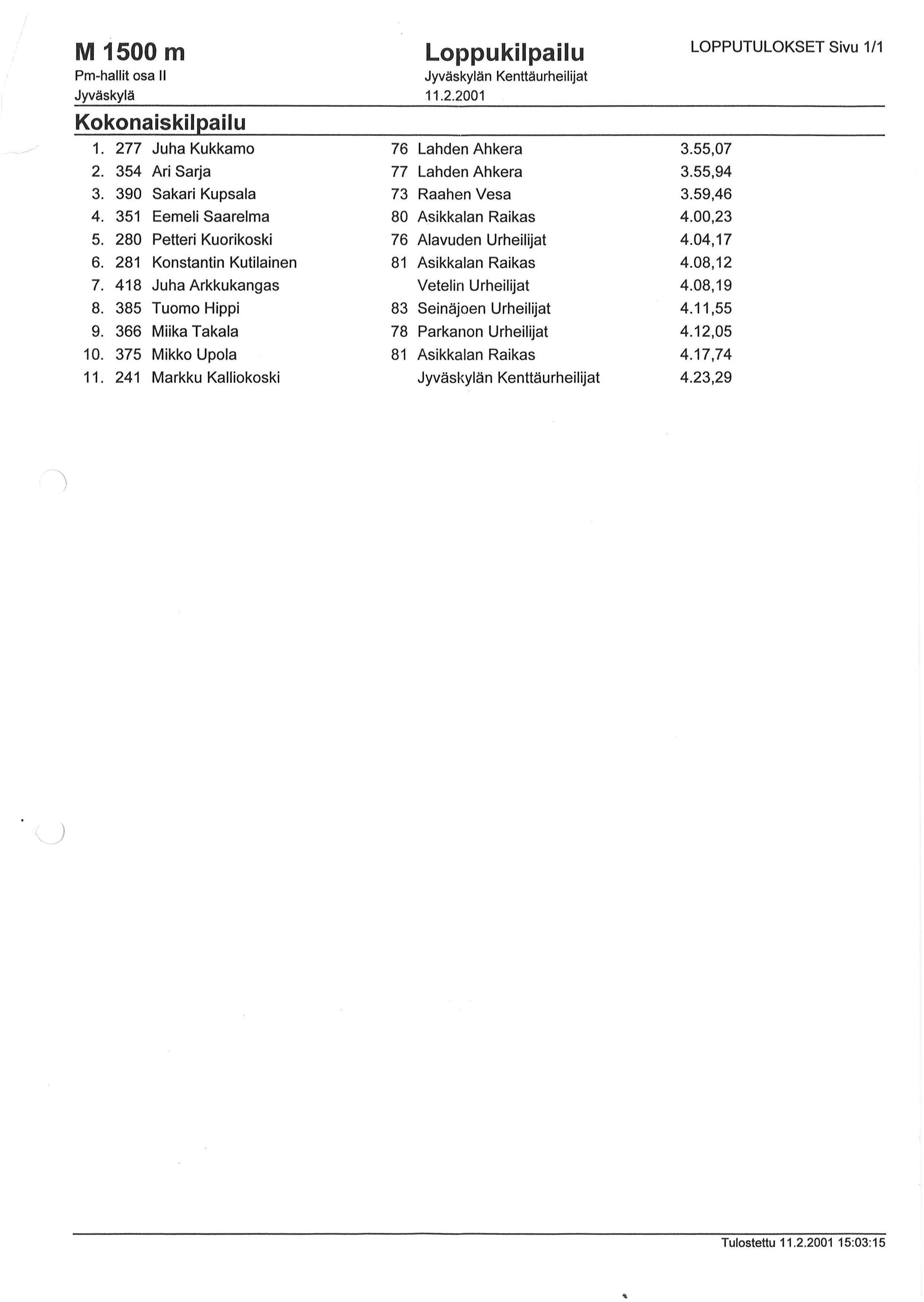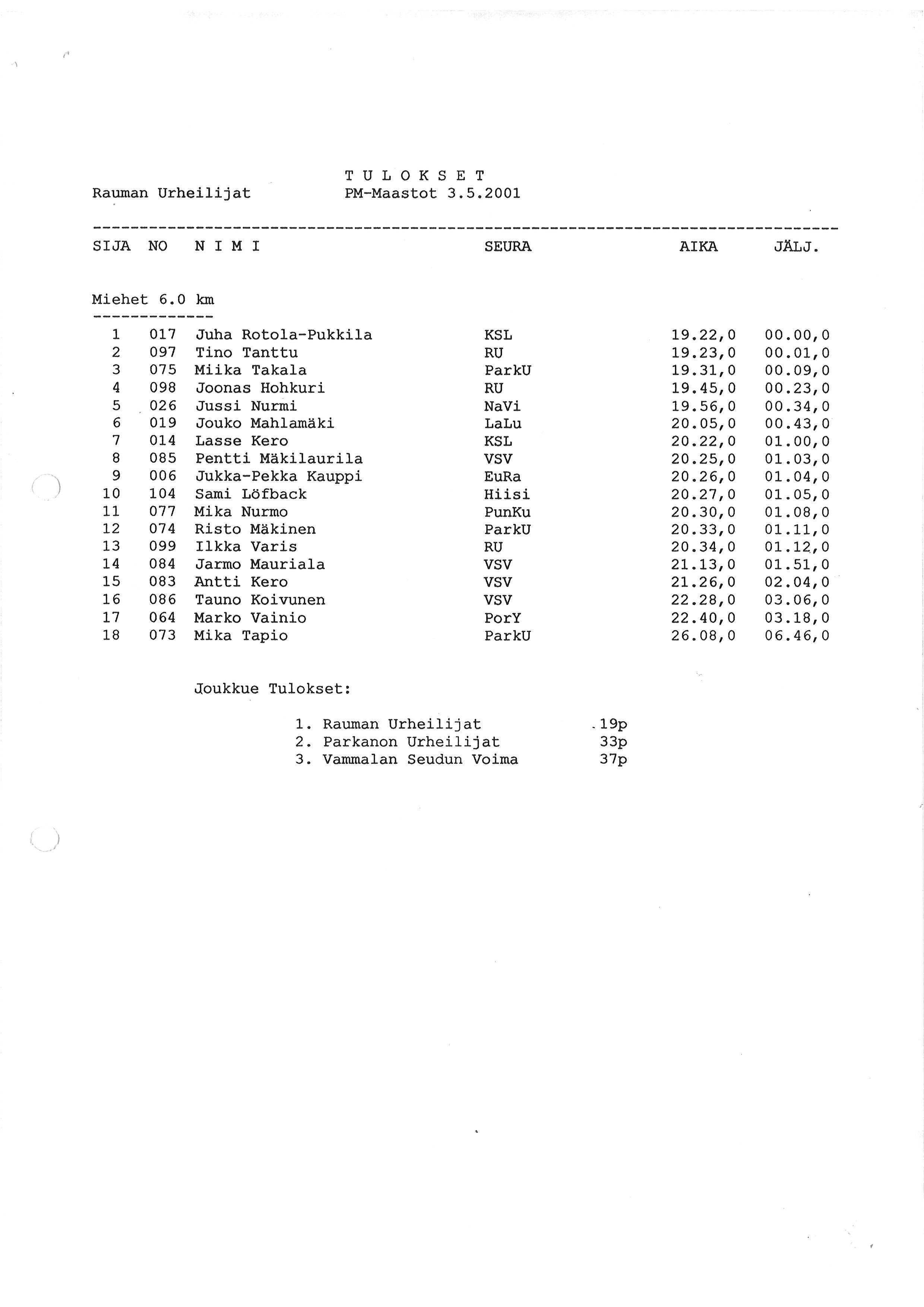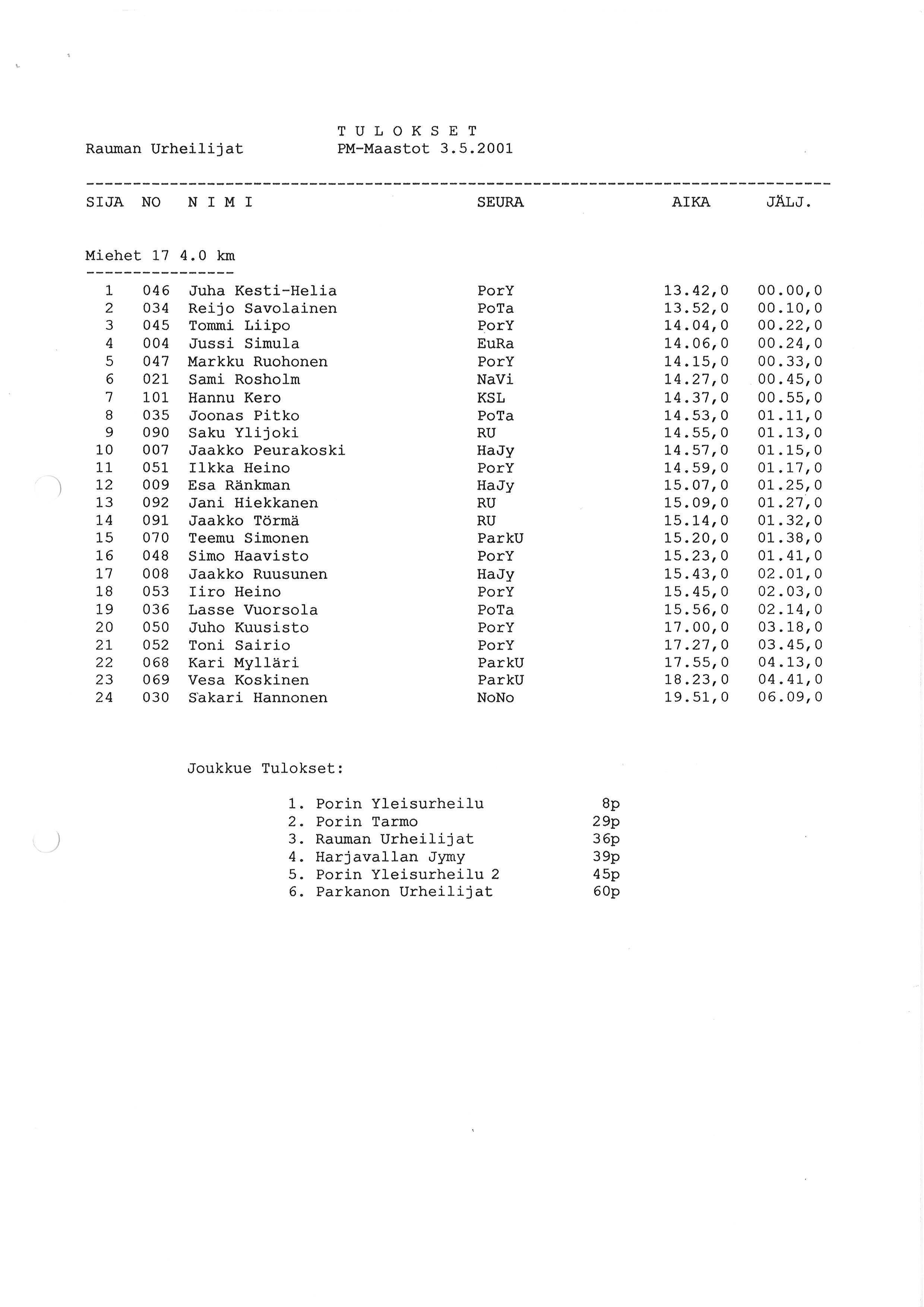 Miikan tuloksia 2001 1/2