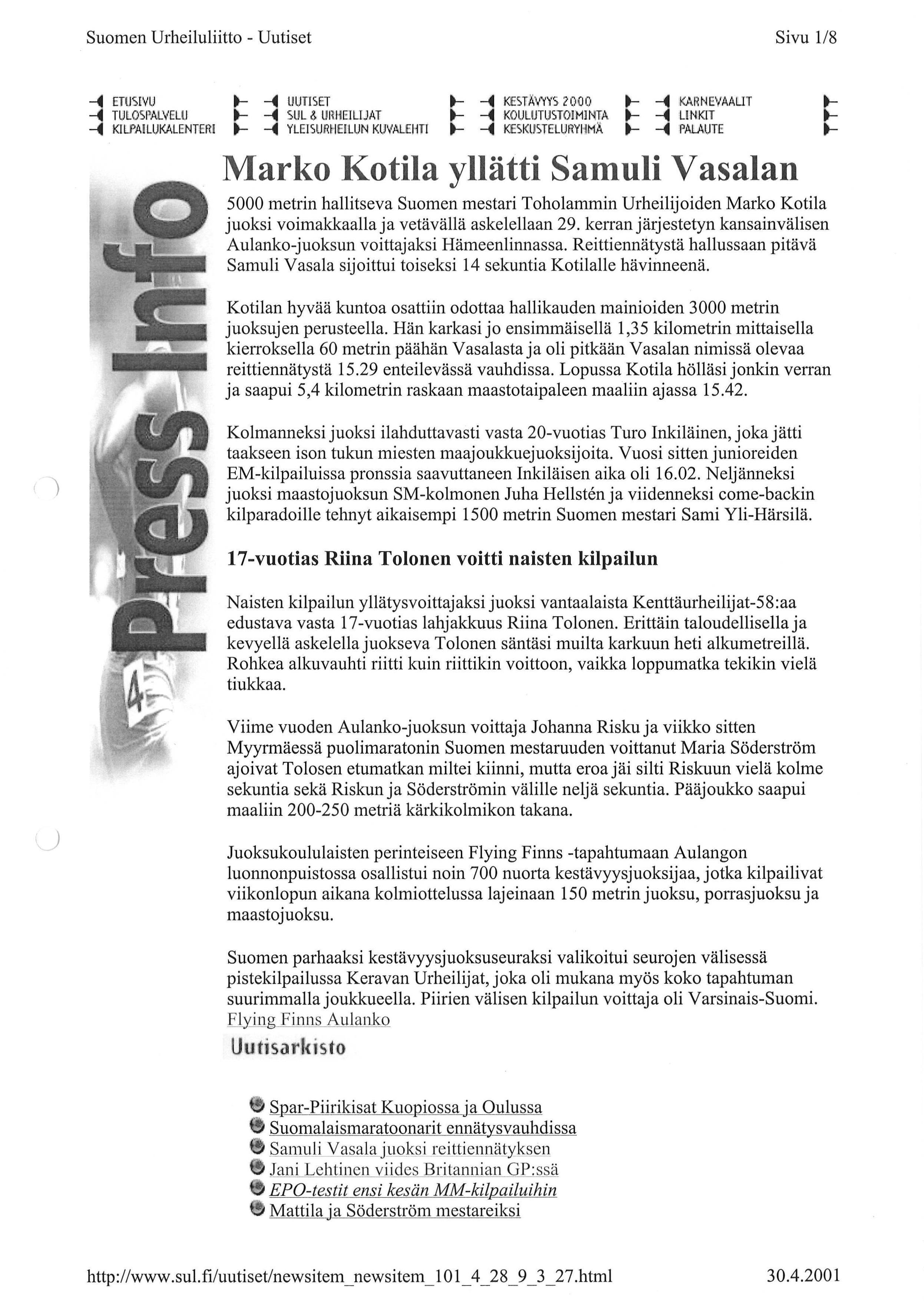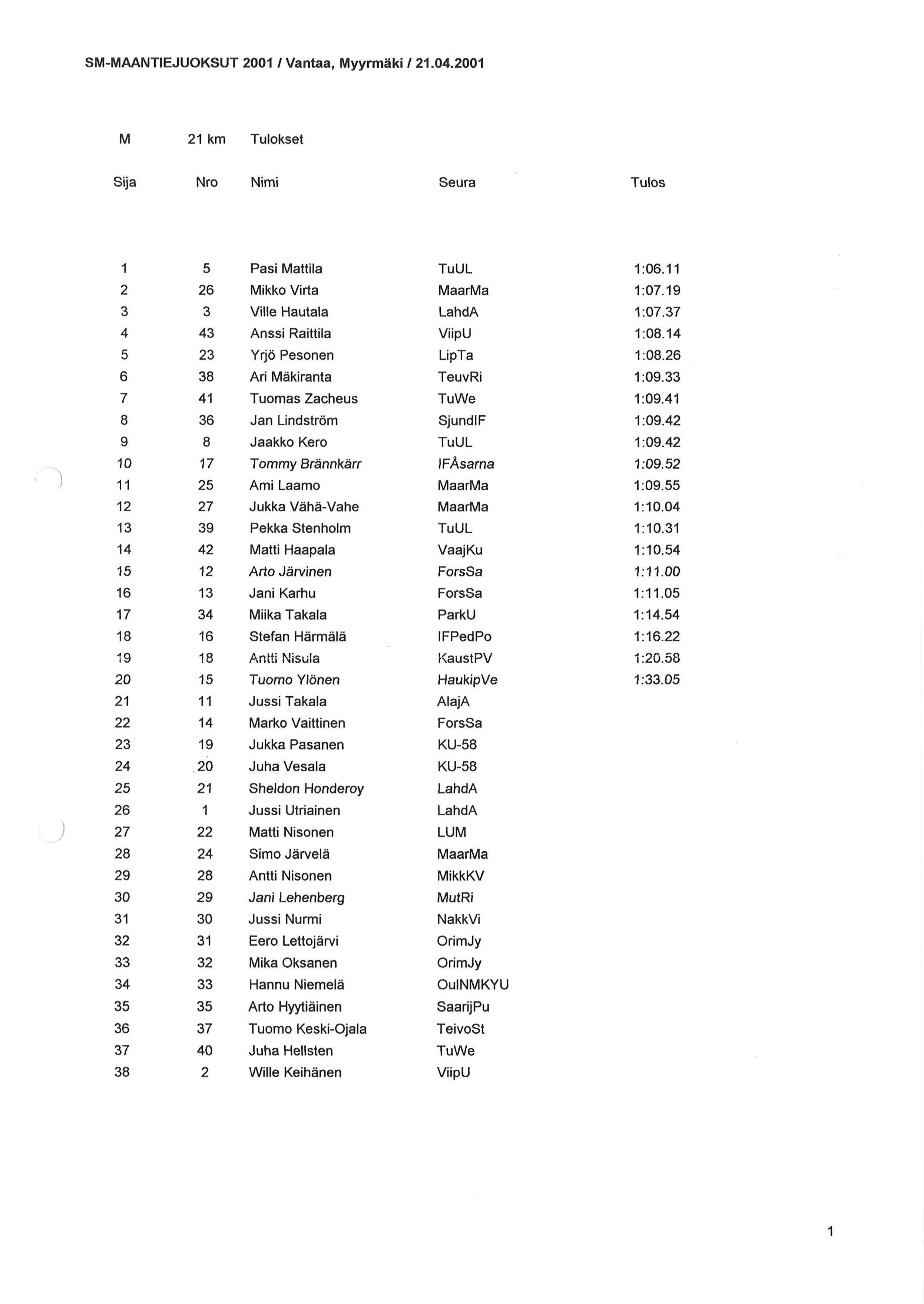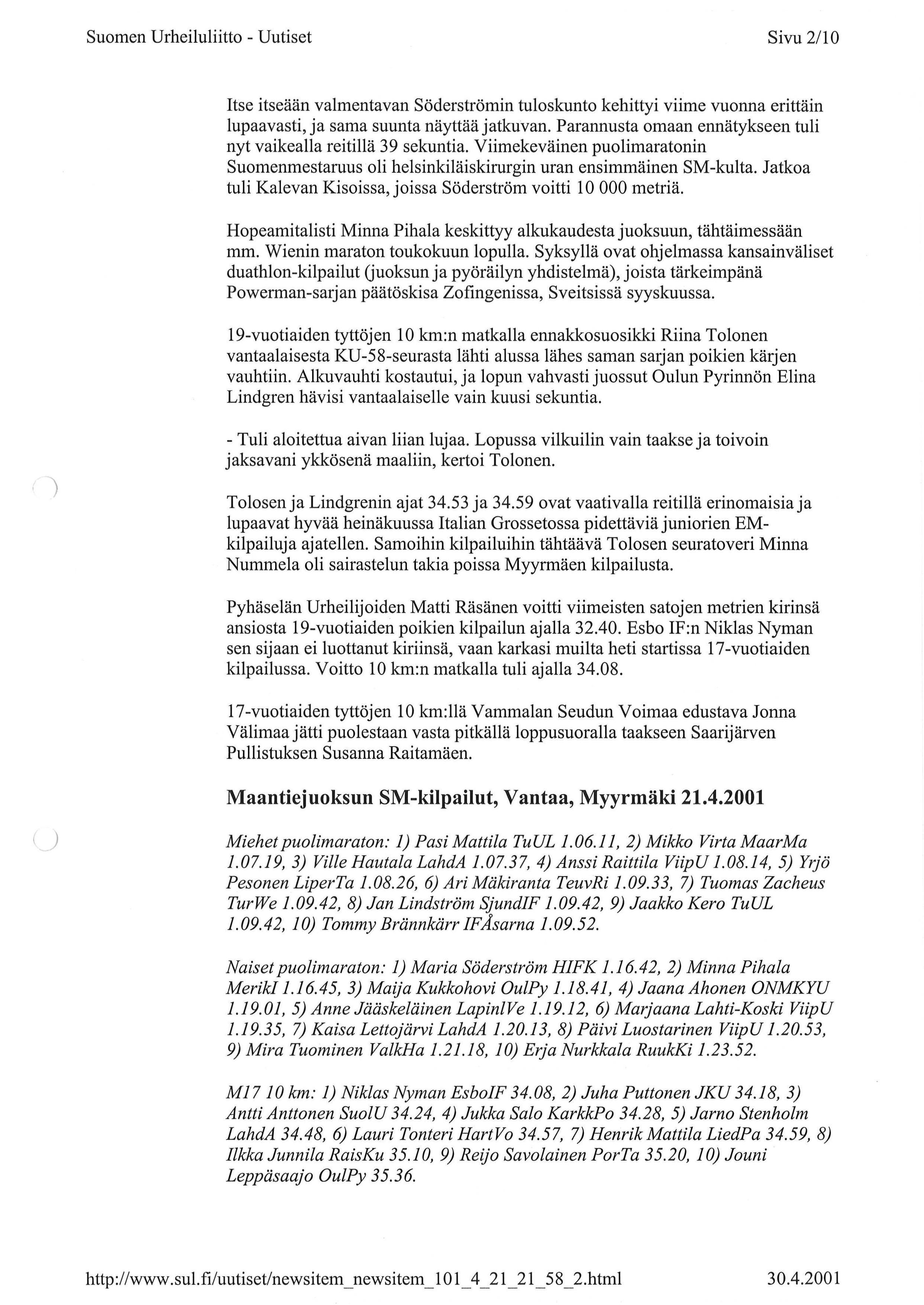 Miikan tuloksia 2001 1/2