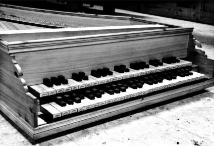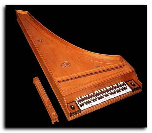 Our instrument maker has a second solution. For the “E sharp” he could add another lever to the keyboard and one more course of strings to the instrument’s harp.