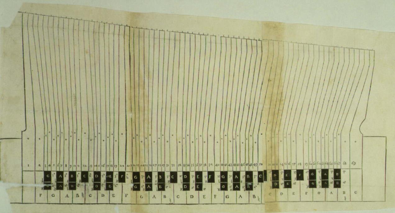 Design for the lower keyboard of Vicentino’s archicembalo Printed by Antonio Barre, Rome, 1555 Vatican Library Casimiri II 173 foldout music28 NB.23