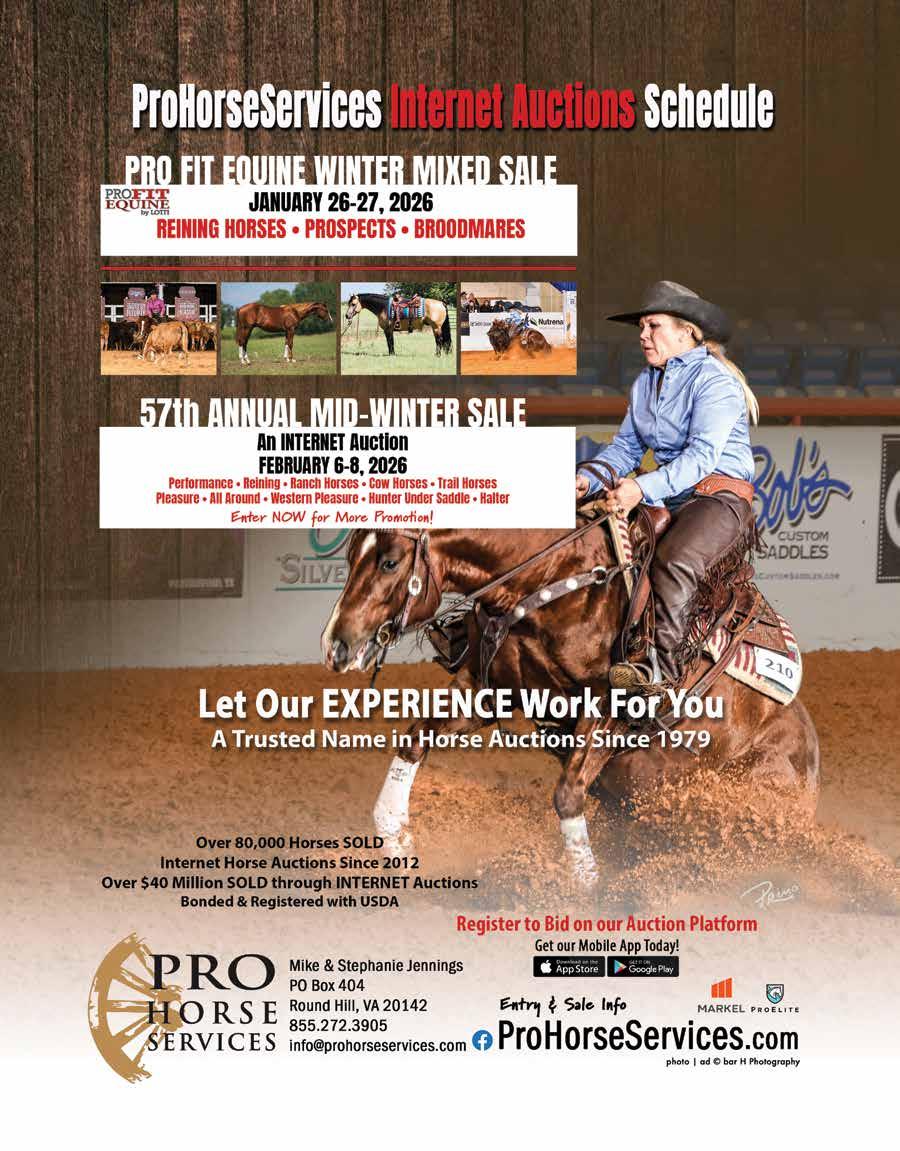 Eighty-five head are cataloged for this year, including 60 home-raised St. Clair horses. Every consignment is carefully screened to match the program’s reputation for pretty, balanced, versatile athletes, says Mike. “We’ve been very particular about what we allow in the sale. The horses have to reflect what we’re building.”