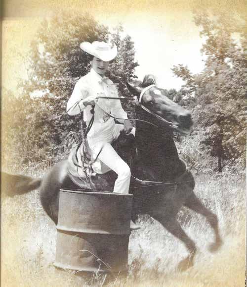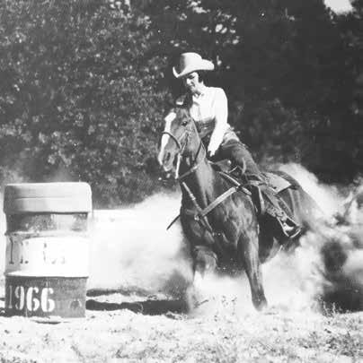 She then told the following, “My mother kept Jim Bo, and I went through school doing other things like sports and everything else. When I was a senior in high school, I went to a rodeo, and when I came home from that rodeo mother had that one horse. He had not been used for probably eight years, and I took my dad’s roping saddle and made a barrel horse out of him. That was my first barrel horse.”