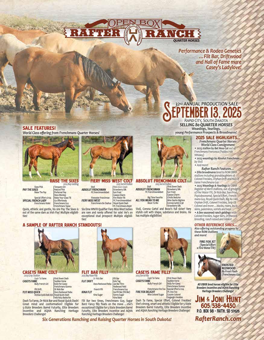 and one stakes winner. His stakes winner is Tuna Pal, winner of the River Downs Hurdle Handicap, and he was second in the Arlington Downs Hurdle Handicap. His daughter, Frank’s Flower, was third in the Arlington Lassie Stakes. He sired 19 foals that are listed in the AQHA records, with 14 of them Thoroughbreds and five quarter horses. In addition to Cebe Reed, he sired Sorlis, with five AQHA performance points with an ROM, and Bad Booger, with 13 AQHA points with an ROM.