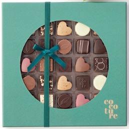 · Cocoture. Fyldte chokolader og konfektstykker i rød FSC Cocoture æske. 81g