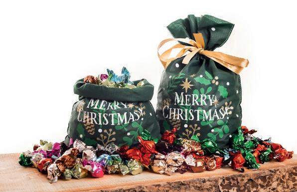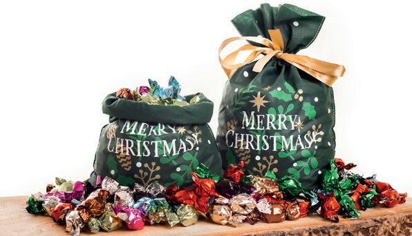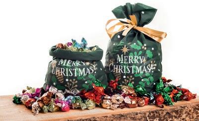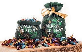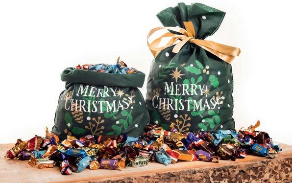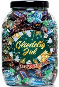 Den populære julesæk med sløjfe og blandede lækkerier. I sækken finder du en blanding af de små barer (Mars, Snickers, Bounty og Twix) sammen med en af julens mest populære blandinger Marabou Twist. Hertil kommer en blanding lækre karameller og frugtkarameller for at give blandingen en god alsidighed – noget for enhver smag. 900 g.