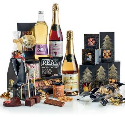1 fl. Celebracion - White Grape 75 cl. (uden alkohol); 1 fl. Celebracion - Red Grape 75 cl. (uden alkohol); 1 fl. John Cordial - Hyldeblomst saft 70 cl.; 12 stk. Luksuschokolade 120 g.; Lakridsblanding 90 g.; Vingummi 90 g.; Dragéemix 90 g.; Knallert m/chokoladekugler 130 g.; Chokoladestna 25 g.; Snack attack - Chilinuts 60 g.; REAL chips 35 g.; 2 stk. Chokoladerørepinde 2x33 g.; Mini Marshmallows - 90 g.; Brændte Mandler 90 g.; 4 stk. chokoladekugler 55 g.; Black Lakrids - Chili 90 g.; House of Toffee - Karameller 100 g.; Blåvand Bolcher - Mix 100 g.; Lakridskugler m/chokolade 90 g.; Marcipanhjerte 45 g.; Mandler m/chokolade 90 g.; Chokoladeplade 80 g.; Pakket i kartonæske m/træuld