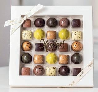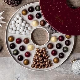 Et mix af mini nougatbarrer og Cocoture fyldte chokoladekugler. Leveret i hvid FSC Cocoture gift selection gaveæske. 250g