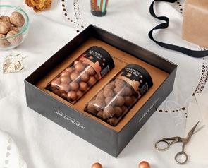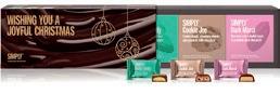 Mærk hvordan juleglæden spreder sig med denne BLACK BOX kombination af CLASSIC CARAMEL og DOUBLE CHOCOLATE. Nyd sød lakrids, blød dulcechokolade og sprøde flager af havsalt når du smager CLASSIC CARAMEL. DOUBLE CHOCOLATE er en sød lakrids drageret i dulcechokolade med stykker af kakaonibs og drysset med kakaopulver, som fuldender en magisk smagsoplevelse.