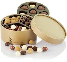 Et mix af marcipanhjerter, massive flødechokolade hjerter i guldfolie, lakrids med chokolade og chokoladeovertrukket mandler/nødder. Leveret i guld FSC Cocoture hatteæske. 240g.