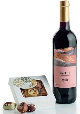 1 fl. Electum, Syrah, Spanien; 5 stk. Luksuschokolade 50 g.; Pakket i sort stofpose.